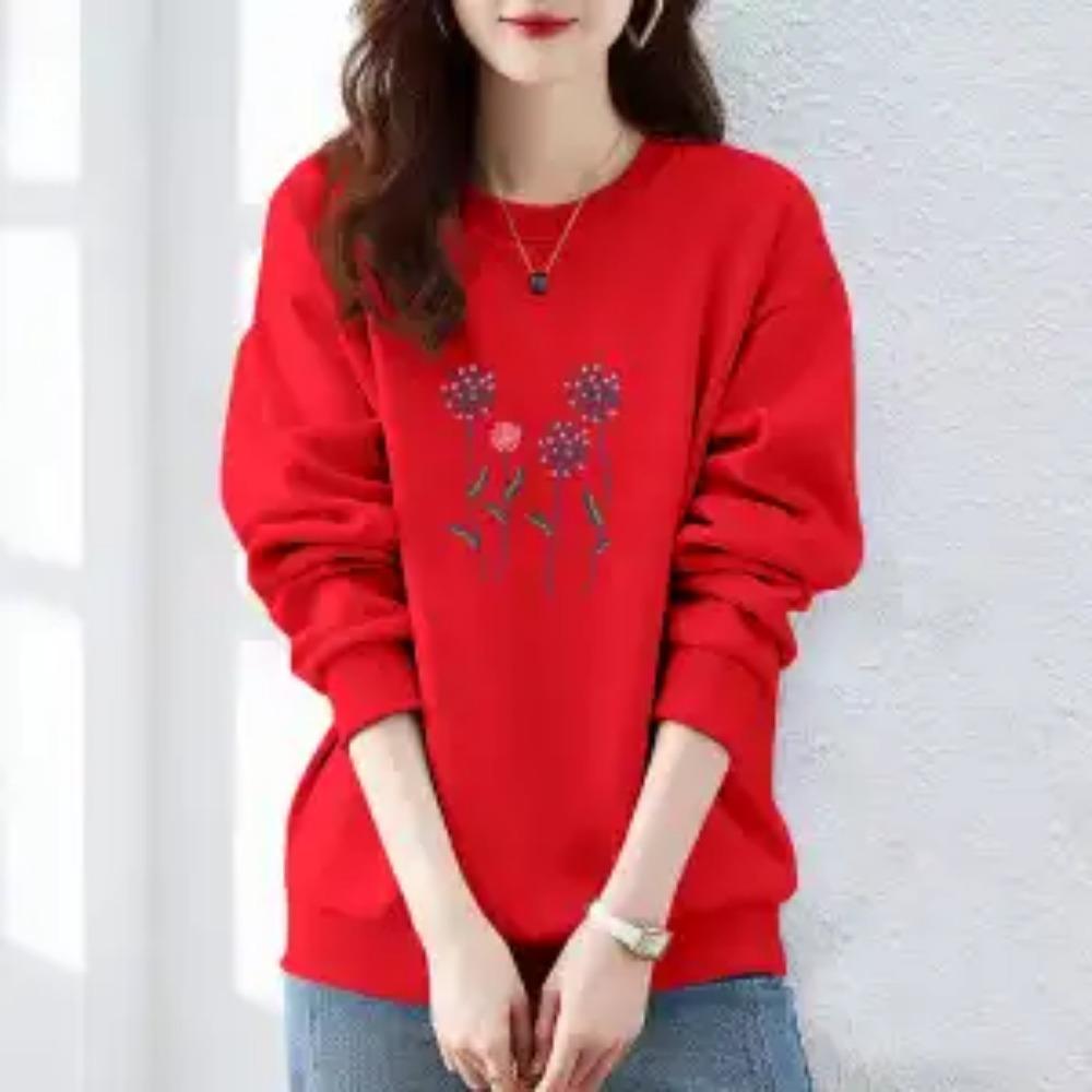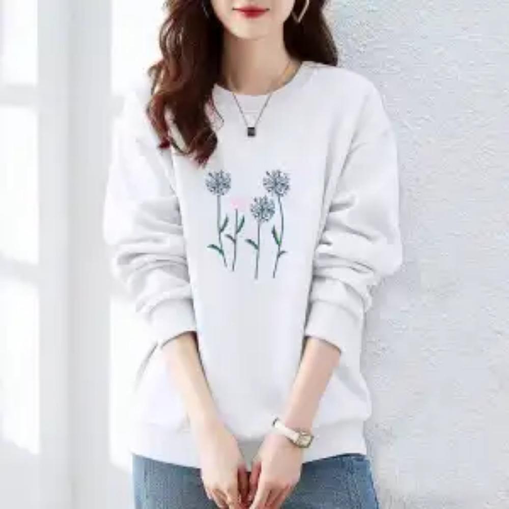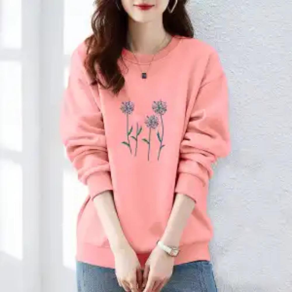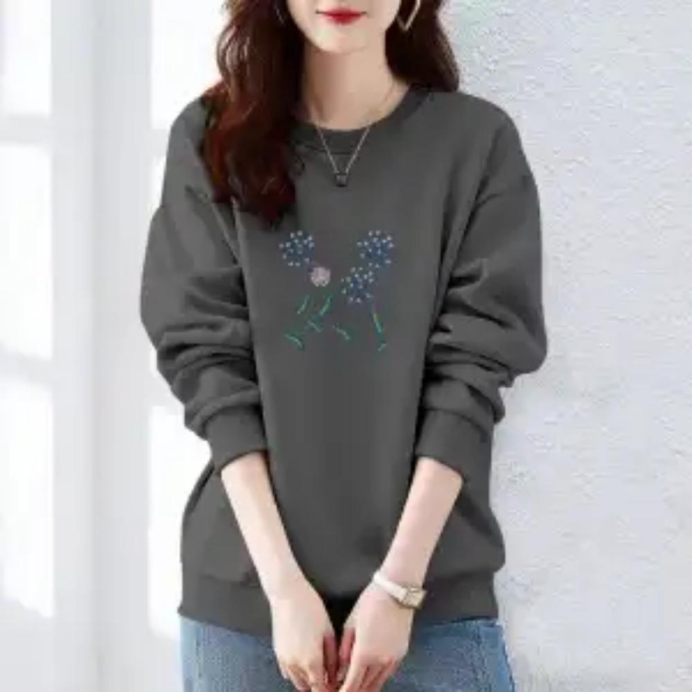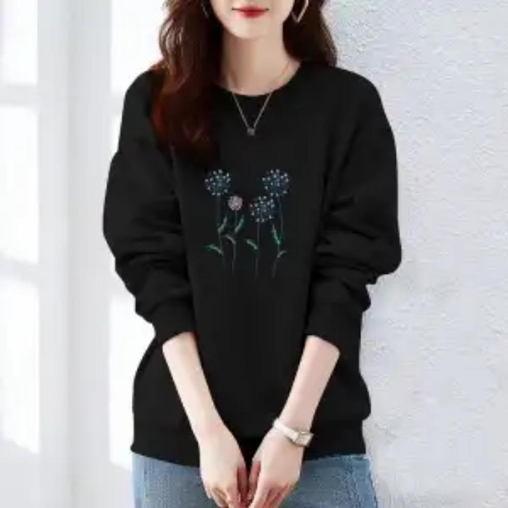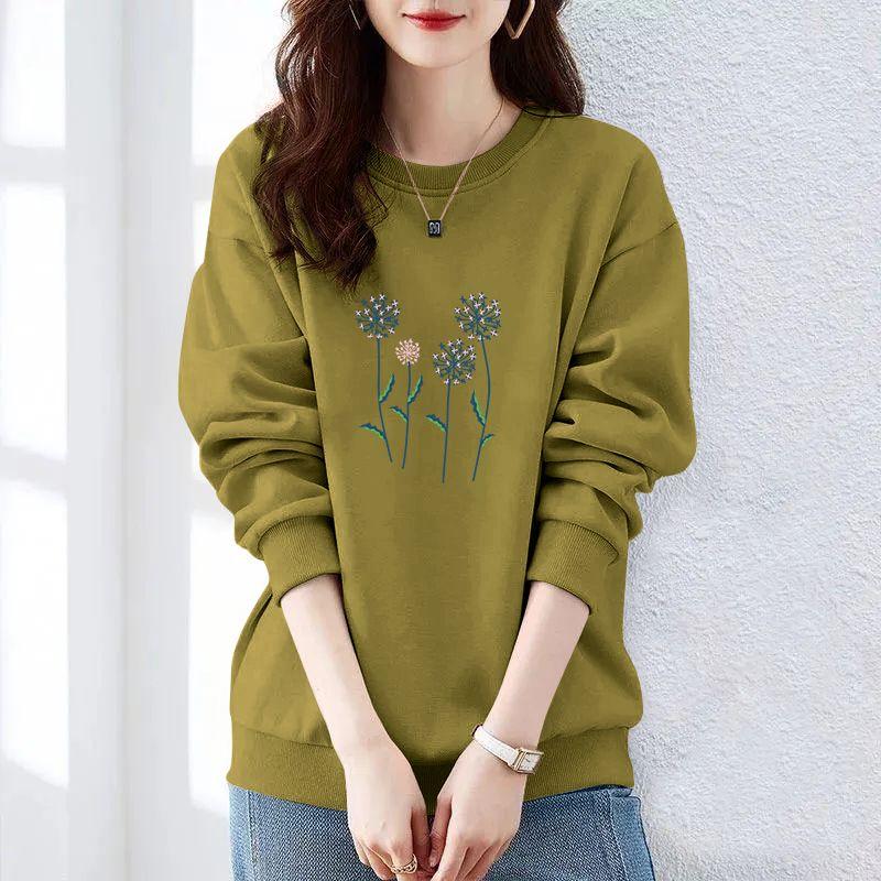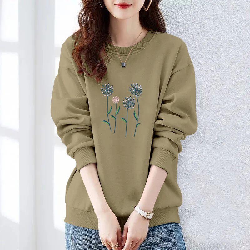 Осень и Зима Женские Пуловеры с Круглым Вырезом, Длинными Рукавами, Принтом, Свободного Кроя, Корейские Толстовки, Модные, Классические, Повседневные, Подходящие ко всему Топы