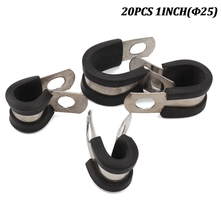20 шт. 1 дюйм Нержавеющая сталь Кабельный зажим Обрезиненный Изолированный зажим Металлический зажим Держатель трубы для установки трубы или кабеля