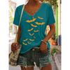 Летний топ с V-образным вырезом и 3D-принтом птицы, модная повседневная женская футболка с коротким рукавом