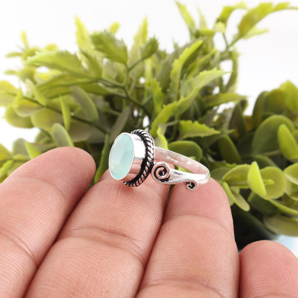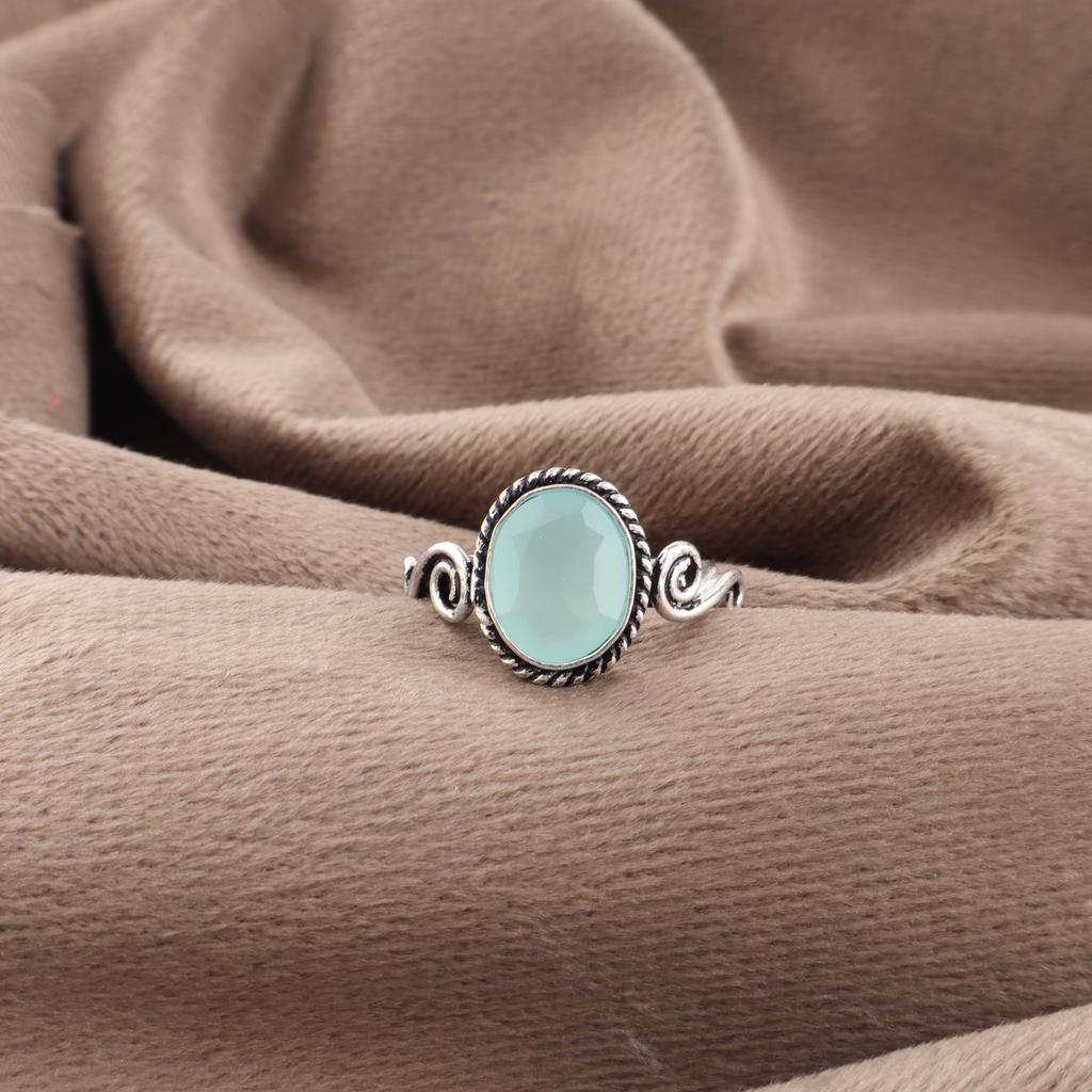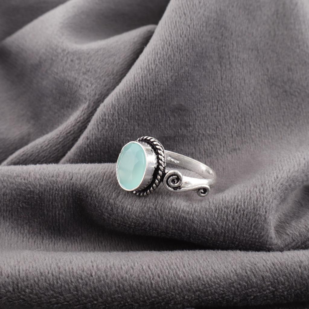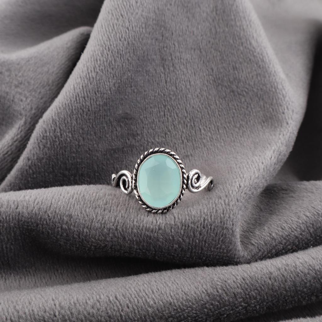Кольцо с аквахалцедоном, Ювелирные изделия из стерлингового серебра 925 пробы, Кольцо с драгоценным камнем, Подарок для нее, Изысканные украшения ручной работы