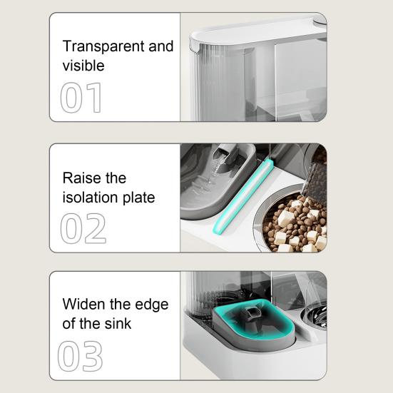 Предотвращение переполнения: Попрощайтесь с беспокойством о переливе или путанице во время кормления, поскольку эта кормушка гарантирует вашему питомцу неизменно аккуратные и удобные приемы пищи.