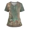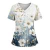 Женская свободная футболка с коротким рукавом, модным принтом цветов и растений, V-образным вырезом, застегивающаяся на пуговицы, с боковым разрезом