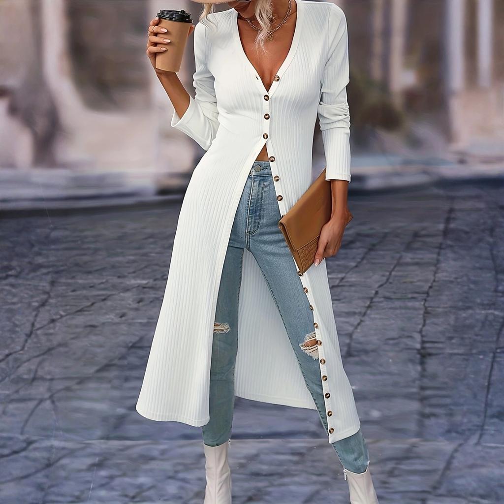 Женский модный повседневный однотонный кардиган с длинным рукавом и длинный топ-футболка с V-образным вырезом — купить товар онлайн с бесплатной доставкой по всему миру!