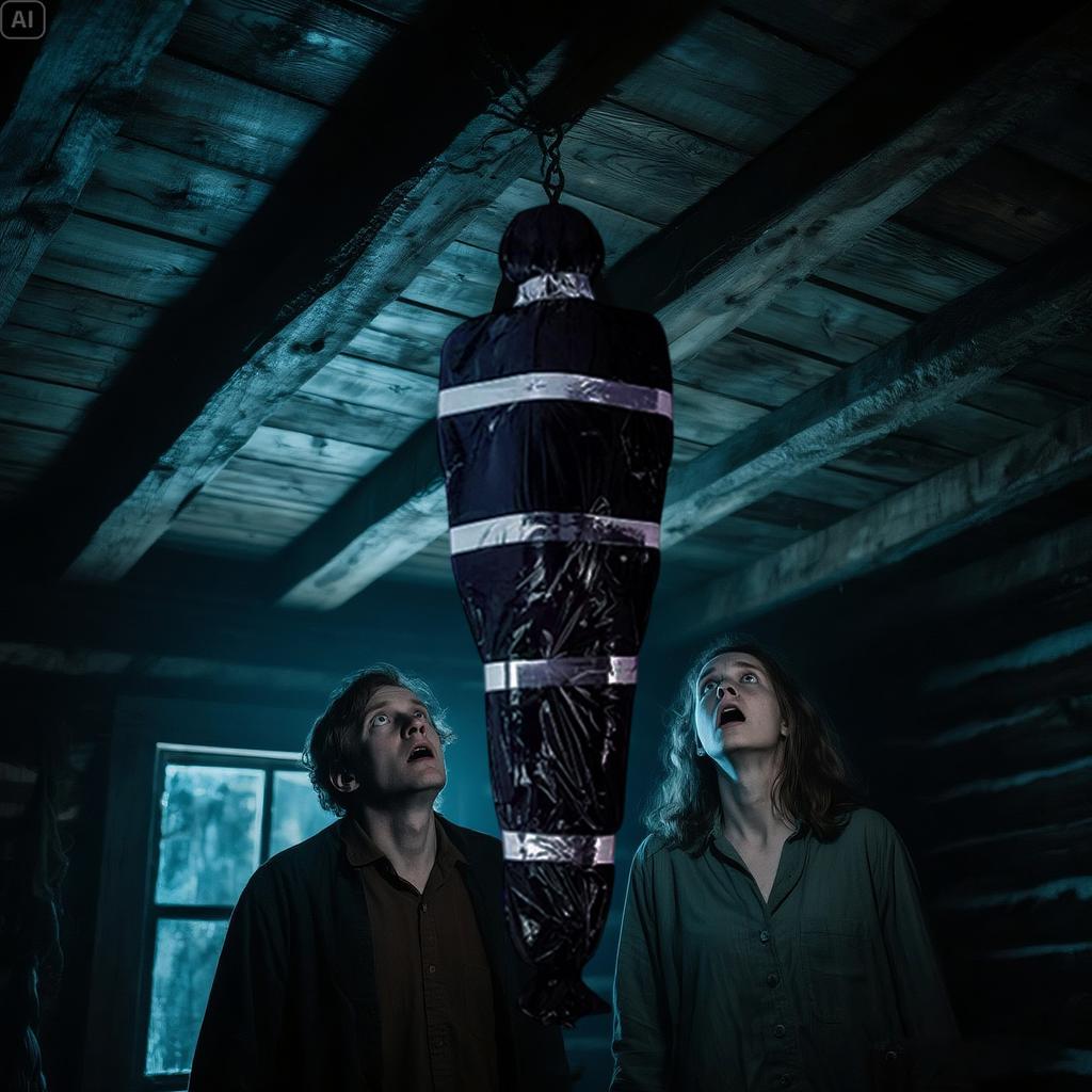 Поддельный труп в мешке для ужасов: Реквизит включает в себя детализированный манекен, обернутый в черную пластиковую упаковку, создающий жуткий визуальный эффект, усиливающий хоррор-тематику домов с привидениями, квест-комнат и вечеринок ужасов.