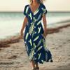 Модное женское летнее пляжное платье с V-образным вырезом и коротким рукавом с цветочным принтом