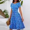Женское повседневное модное платье миди А-силуэта с круглым вырезом, плиссированными короткими рукавами и цветочным принтом