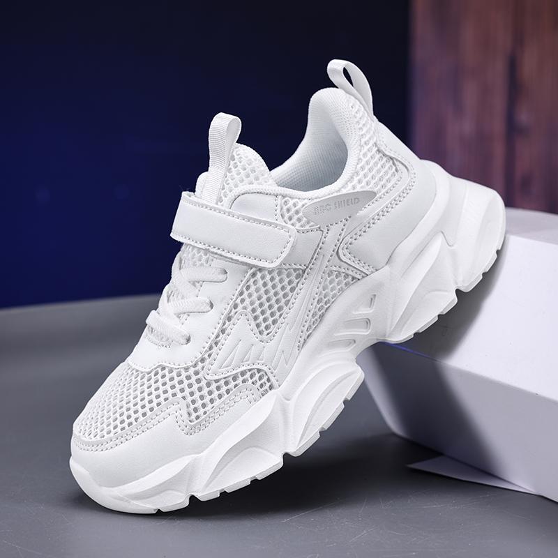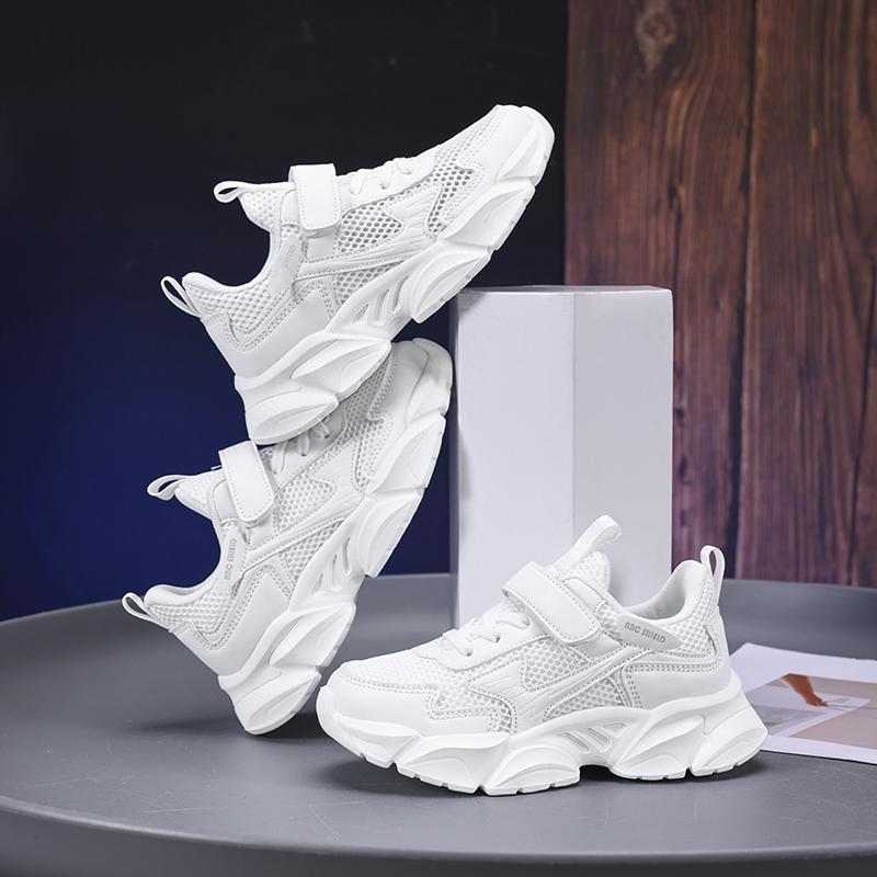 Легкие детские белые кроссовки Дышащая сетка для мальчиков Школьные повседневные прогулочные туфли Нескользящие спортивные детские кроссовки для бега для девочек