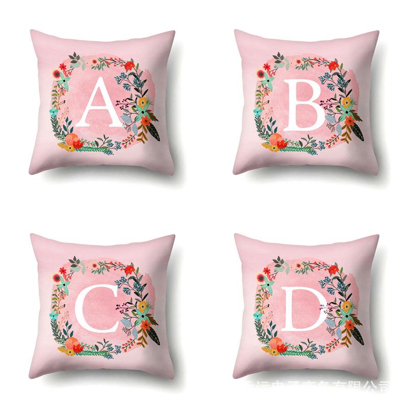Полиэстеровая наволочка Розовый цветок Домашнее украшение Принт 26 английских букв Наволочка для подушки