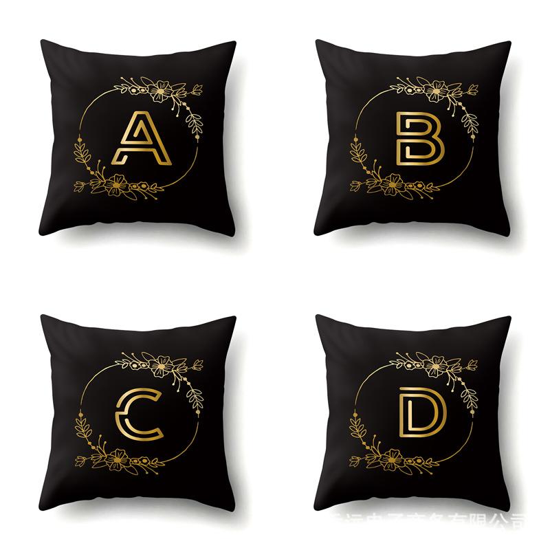 Полиэстеровая наволочка Черный Золотой Цветок Домашнее Украшение Принт Наволочка 26 Английская Буква Наволочка