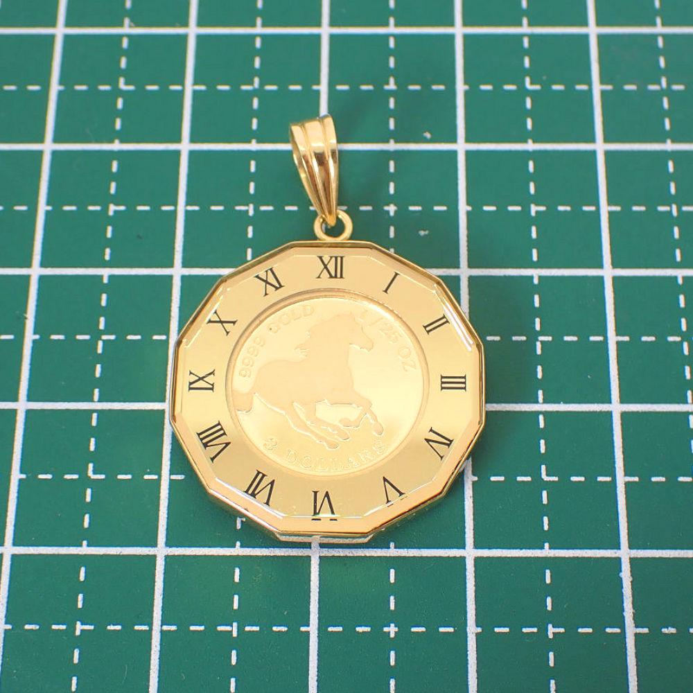 [Used] K24 (999.9) / K18 / Horse Coin Pendant 1/25OZ with Double-Sided Glass / j2-3