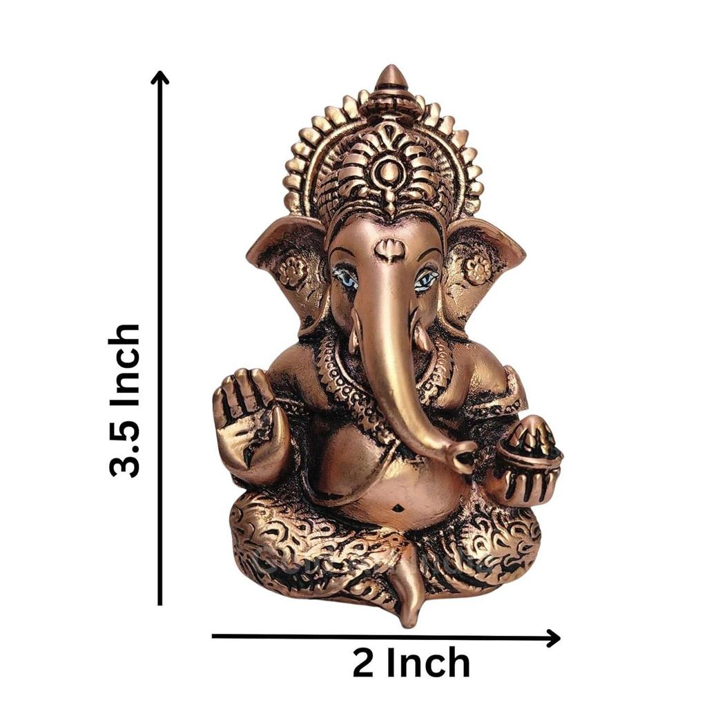 Идол Ганеши | Статуя Ганеши для домашнего декора | Мурти Ганеши для офисного стола и идол Ганапати для приборной панели автомобиля | Уникальный свадебный подарок и подарок на день рождения (Медь Античная 3,5"), религиозный