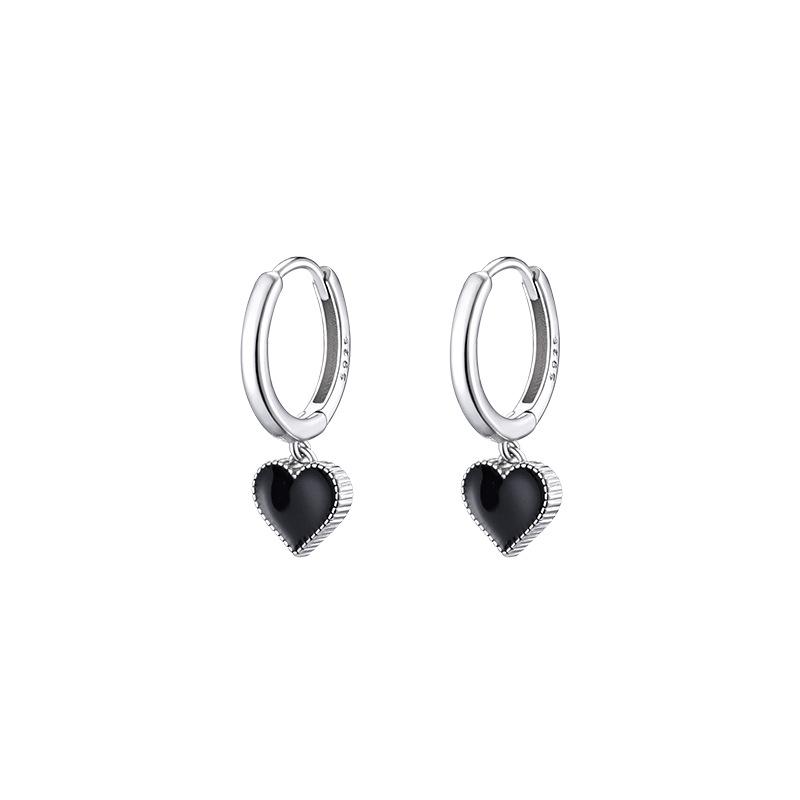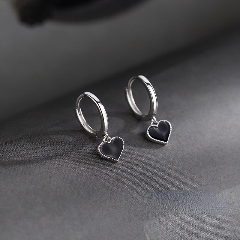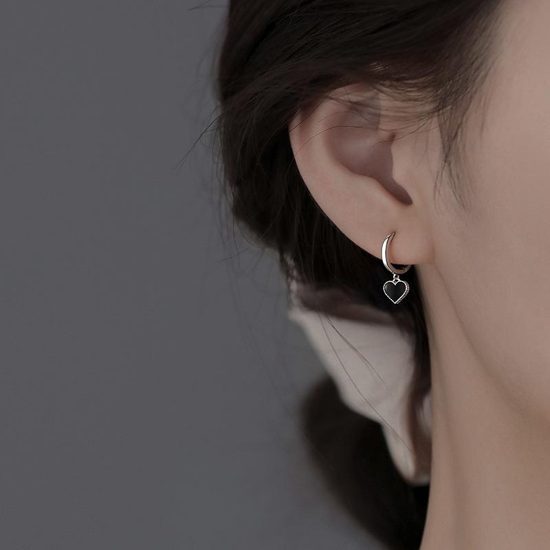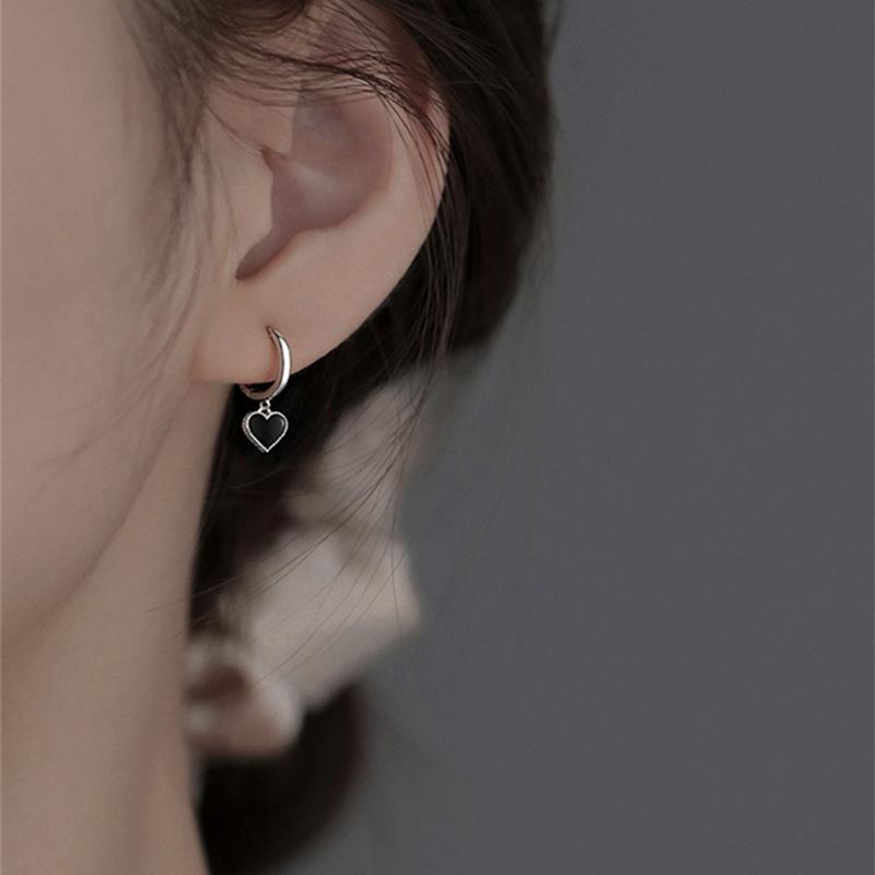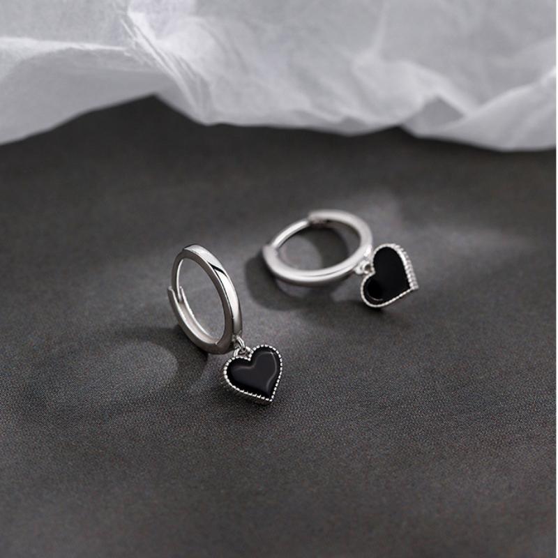 Серьги-кольца в корейском стиле с черными сердцами для женщин, платинового цвета, женские модные ювелирные аксессуары 2022 AVE