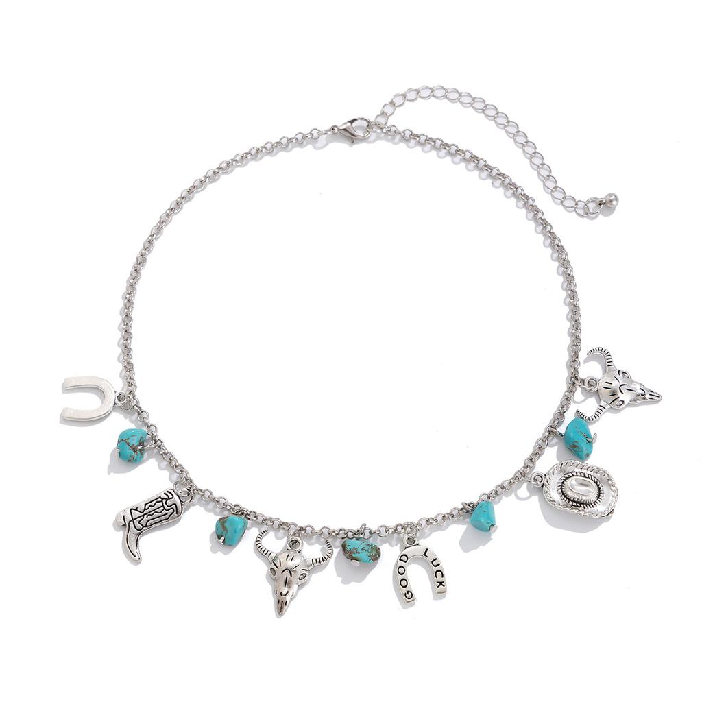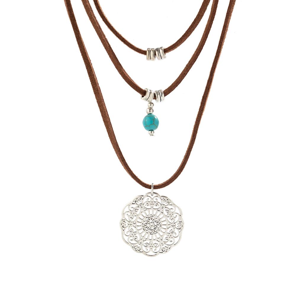 Винтажный бирюзовый кулон Цветочная пластина Фланелевое ожерелье Нишевый этнический стиль Фланелевое ожерелье Харадзюку