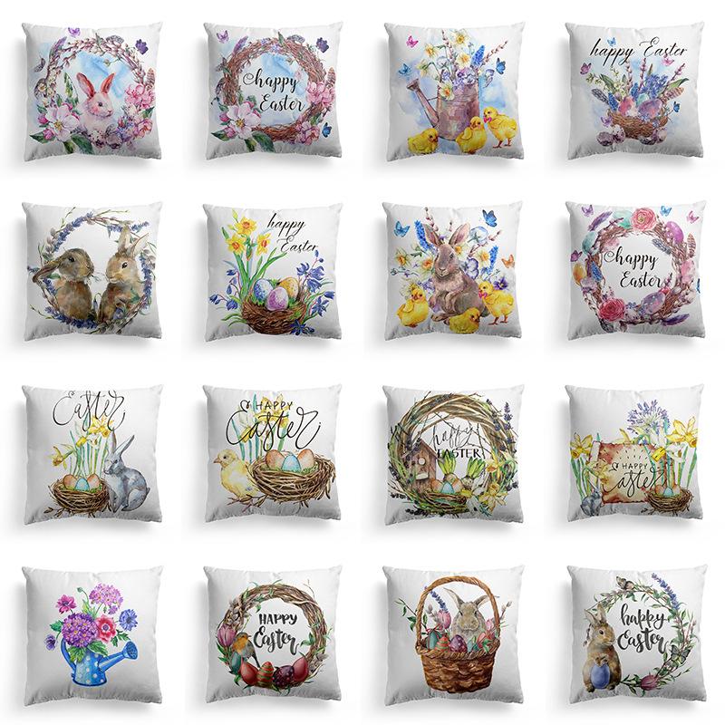 Пасхальная наволочка Скандинавский фестиваль Кролик Цветы Гирлянда Дом Персиковый Кожа Бархат Подушка Наволочка