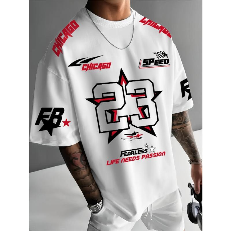 Лето 2025 новая повседневная графическая футболка с короткими рукавами с 3D принтом букв для спортивной и повседневной носки