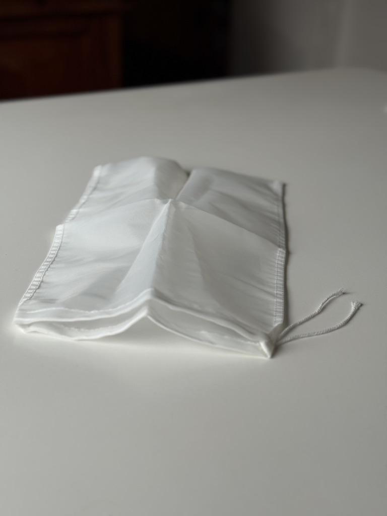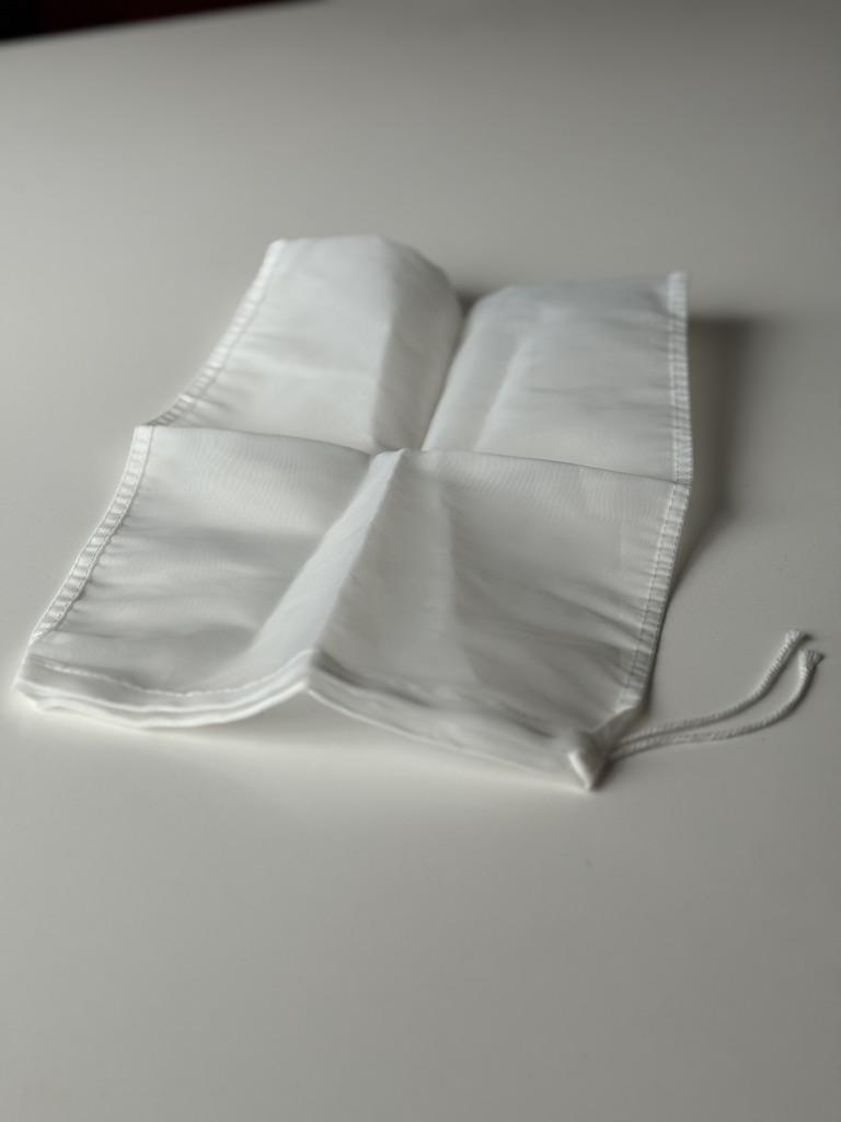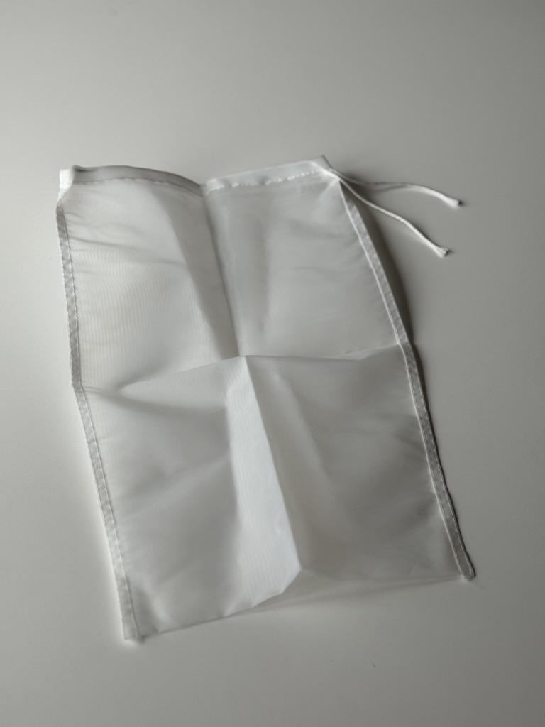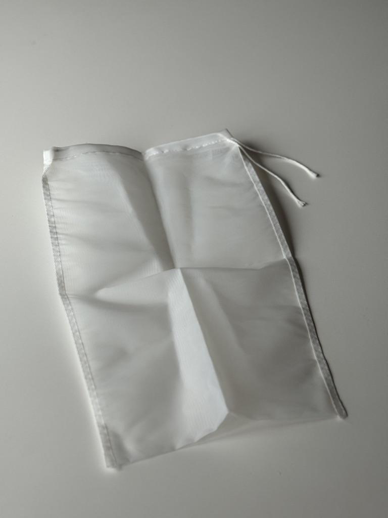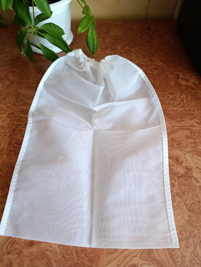 Сетчатый нейлоновый фильтр - мешочек. С помощью такого мешочка можно приготовить сок,творог, бабку жидкость гарантированно отделится от жмыха, жидкости и других составляющих. Так же немаловажным достоинством является то что данный мешок из нейлона устойчив и нейтрален к высоким температурам и его можно использовать при кипячении. Такой мешок выполняет функцию мелкого сита для затирания, а также фильтрации: солода, настоек, процеживания компотов, меда и т.д. Шнурок можно затянуть и завязать узлом для сохранения герметичности. Размер моего мешочка: 25*35 см, но можно заказать и другой размер. Пошит качественно, строчки ровные, торчащих ниток нет. Товар понравился, рекомендую.