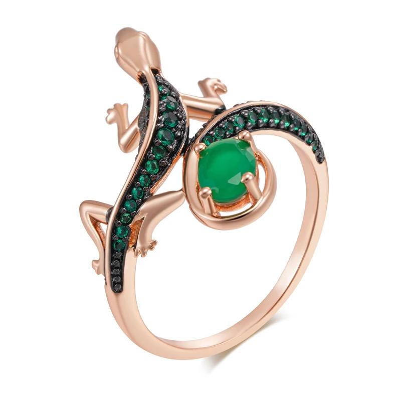 Полностью инкрустированные зеленым цирконом кольца-гекконы с черным покрытием для женщин, готическая модная бижутерия, аксессуары класса люкс AVE — купить товар онлайн с бесплатной доставкой по всему миру!