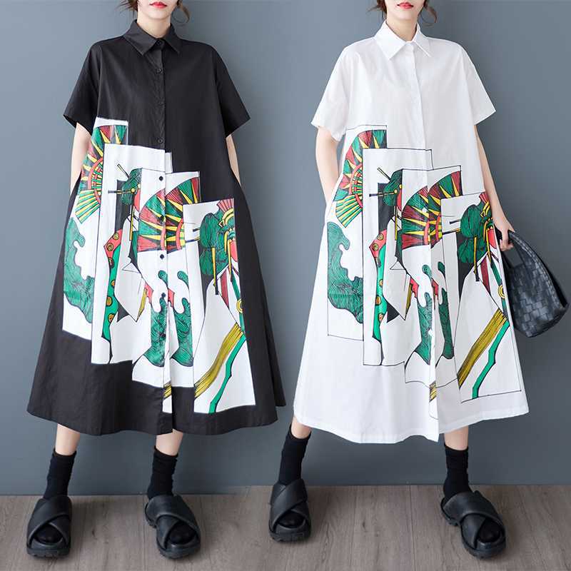 Летнее новое свободное платье большого размера с принтом и вставками, повседневное, простое, милое, с коротким рукавом