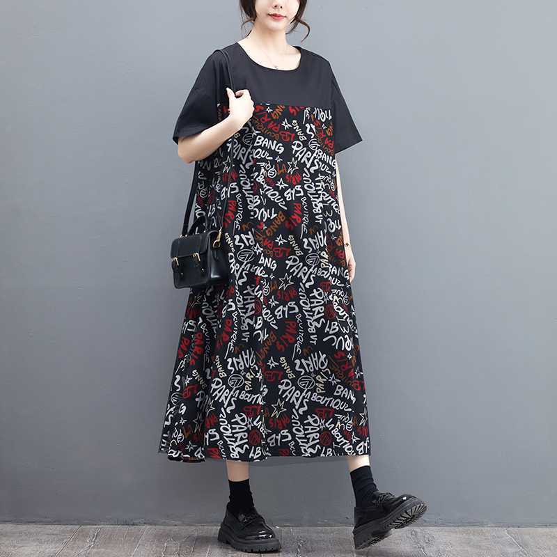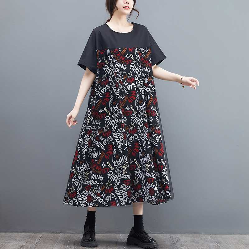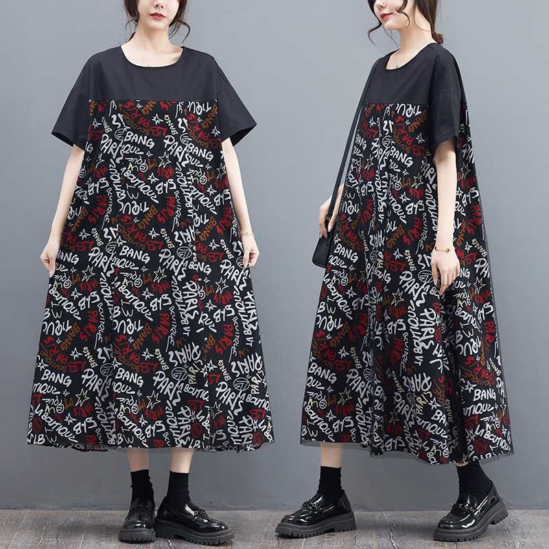 Свободное и модное платье оверсайз из сетчатой ткани в стиле пэчворк, слим-силуэт, ретро-принт, широкие рукава, плиссировка, круглый вырез