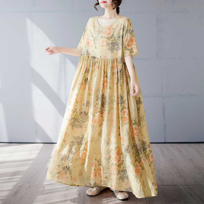 Простая и модная длинная юбка, летнее платье с короткими рукавами и круглым вырезом с принтом