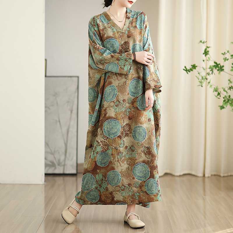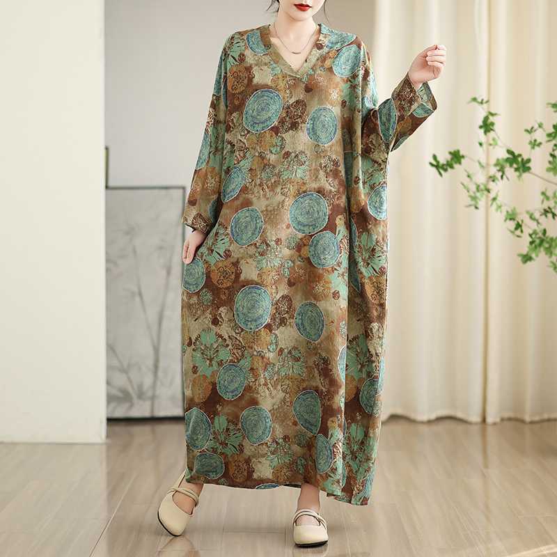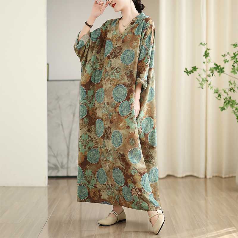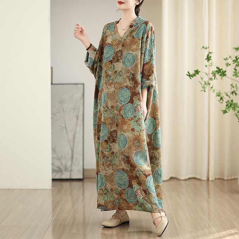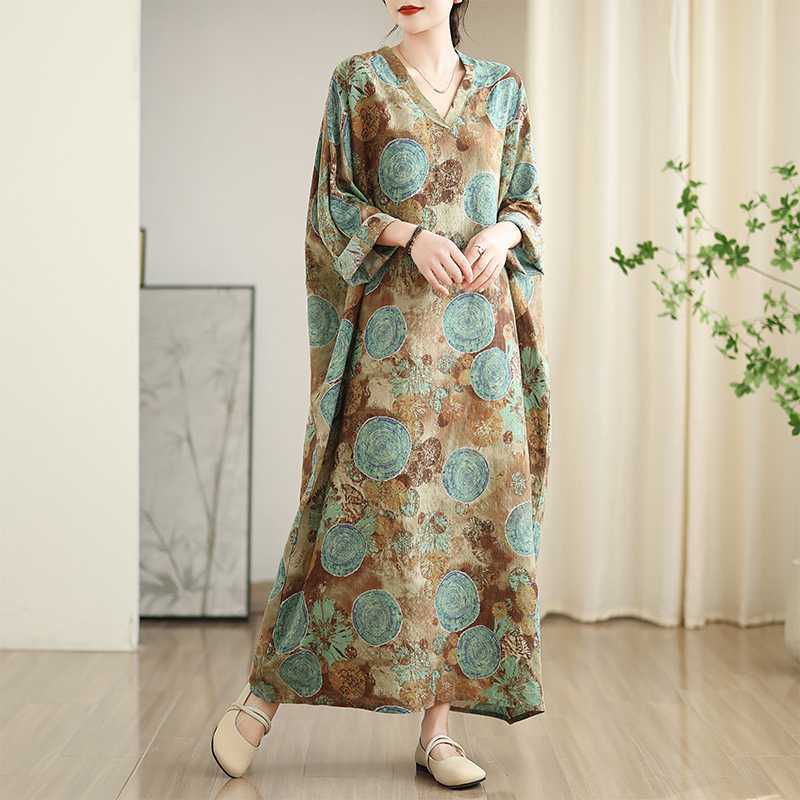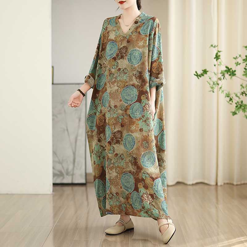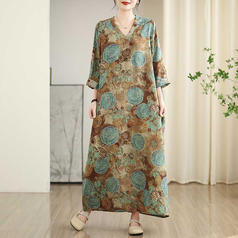 Женское платье нового цвета с V-образным вырезом, ретро, длинная юбка, хлопок-лен