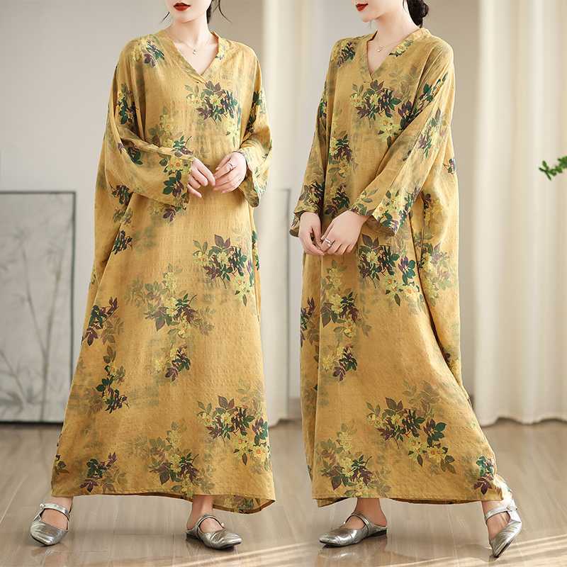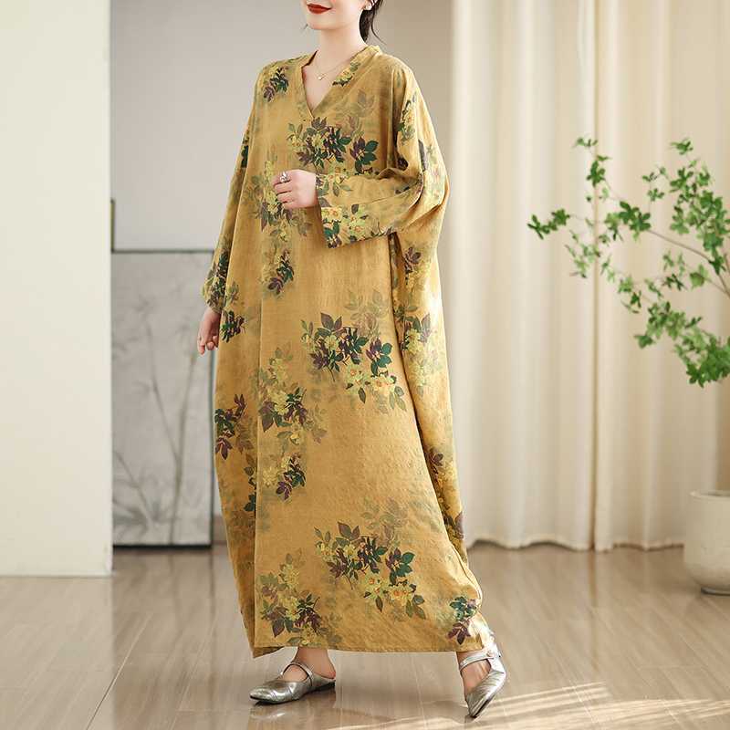 Красочный отпускной стиль, дорожное платье с V-образным вырезом, ретро, длинная юбка, хлопок, лен