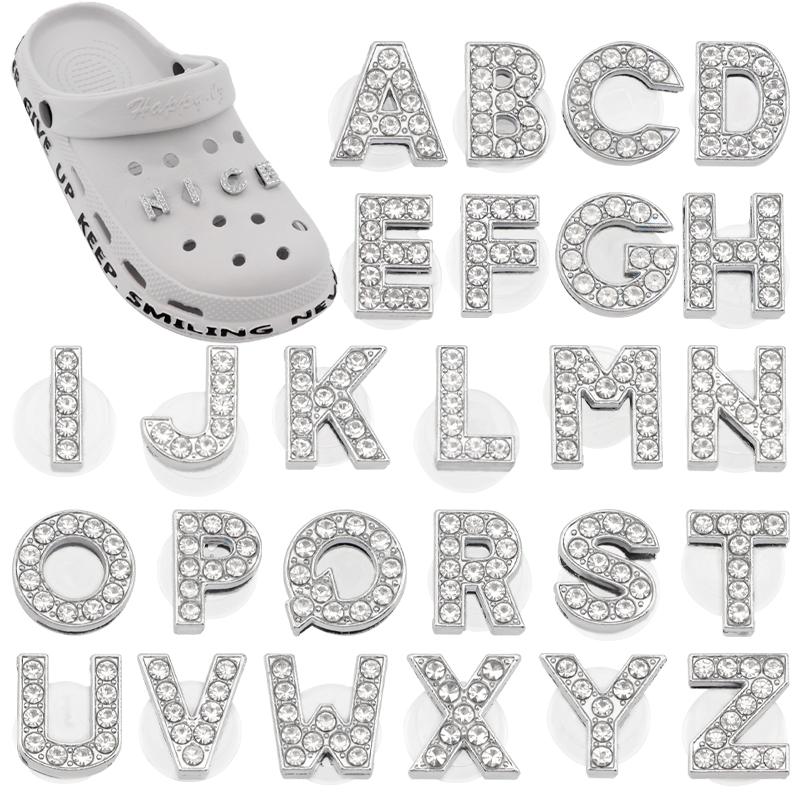 1 шт. Шармы для обуви Блестящие Стразы Буква Кристалл Алфавит Шарм для обуви Украшения Ювелирные изделия Слайдер Браслет Наручные повязки Аксессуар — купить товар онлайн с бесплатной доставкой по всему миру!