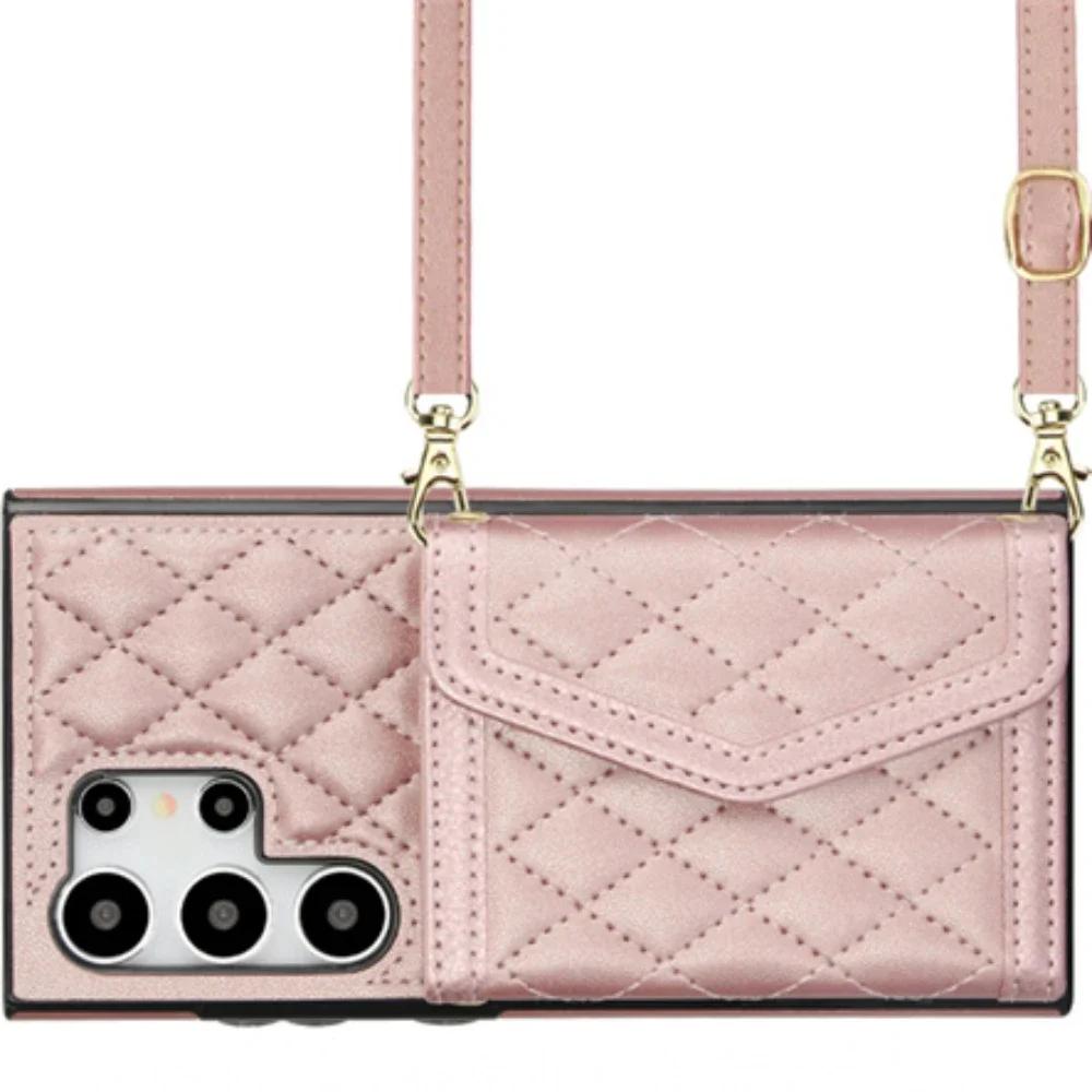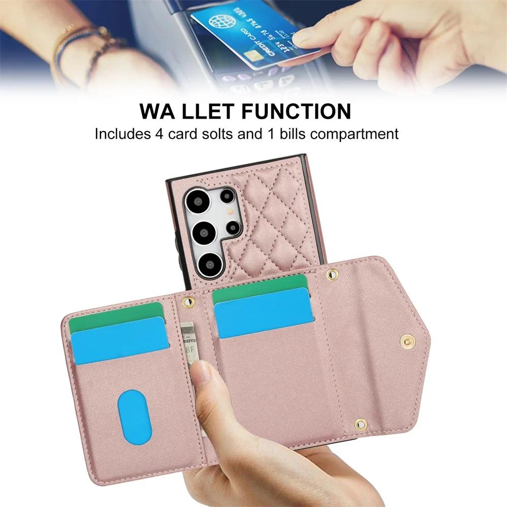 Блокирующий RFID держатель для карт Обложка из ПУ кожи Для Samsung Galaxy S24 Ultra S23 S21 S20 FE S22 Plus +Note 20 Чехол-кошелек через плечо
