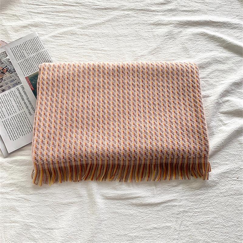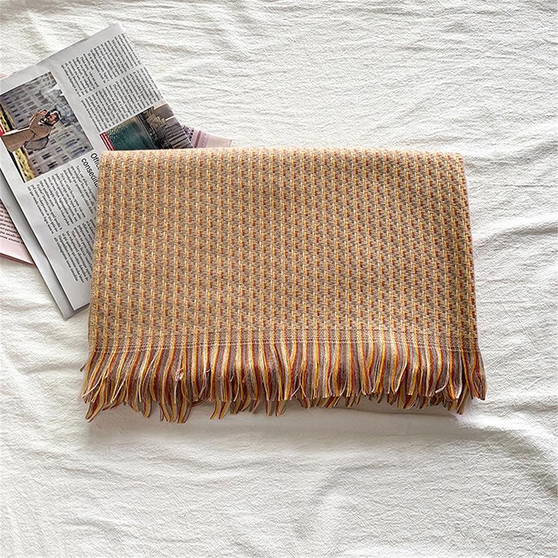 Клетчатый шарф женский зимний новый имитация кашемира теплый с бахромой шаль утолщенный холодный шарф шарф