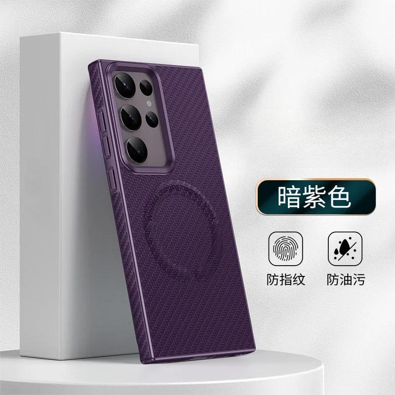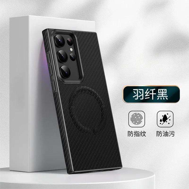 Роскошный чехол для телефона из ТПУ с гальваническим покрытием и текстурой углеродного волокна для Samsung Galaxy S24 S23 S22 Ultra Plus + Крышка с магнитной фиксацией