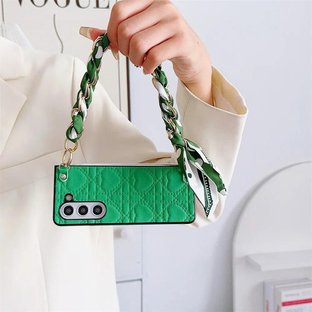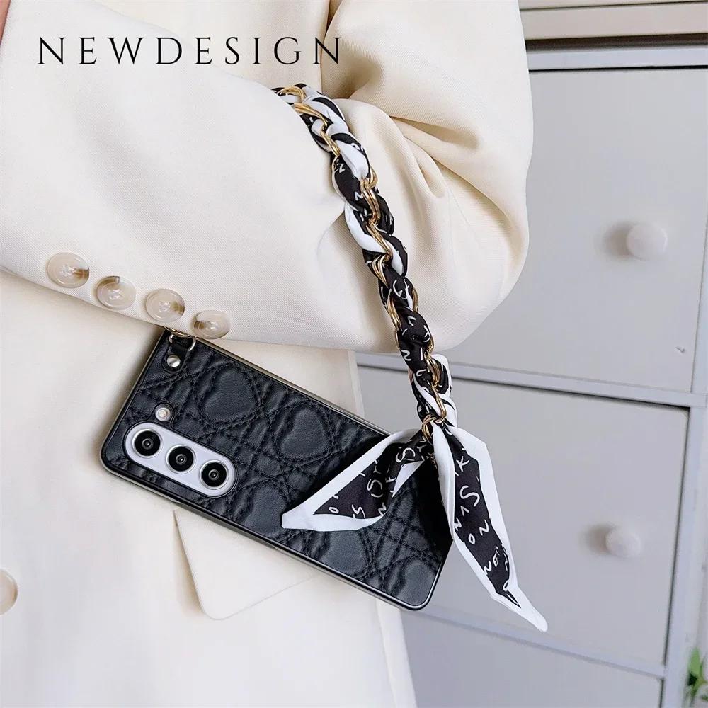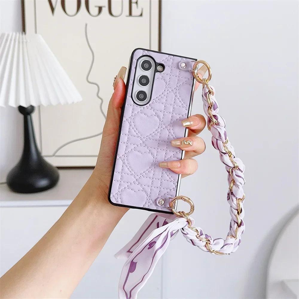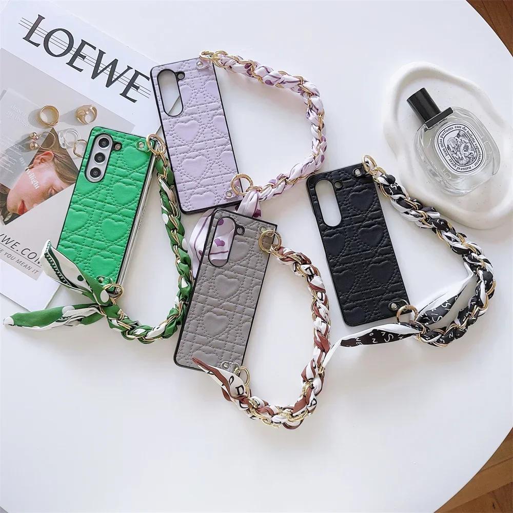 Ромбовидное сердце любви Обложка из ПУ кожи с шарфом Сумочка в стиле цепочки Ремешок на запястье для чехла для телефона Samsung Galaxy Z Fold 6 5 4 3 5G