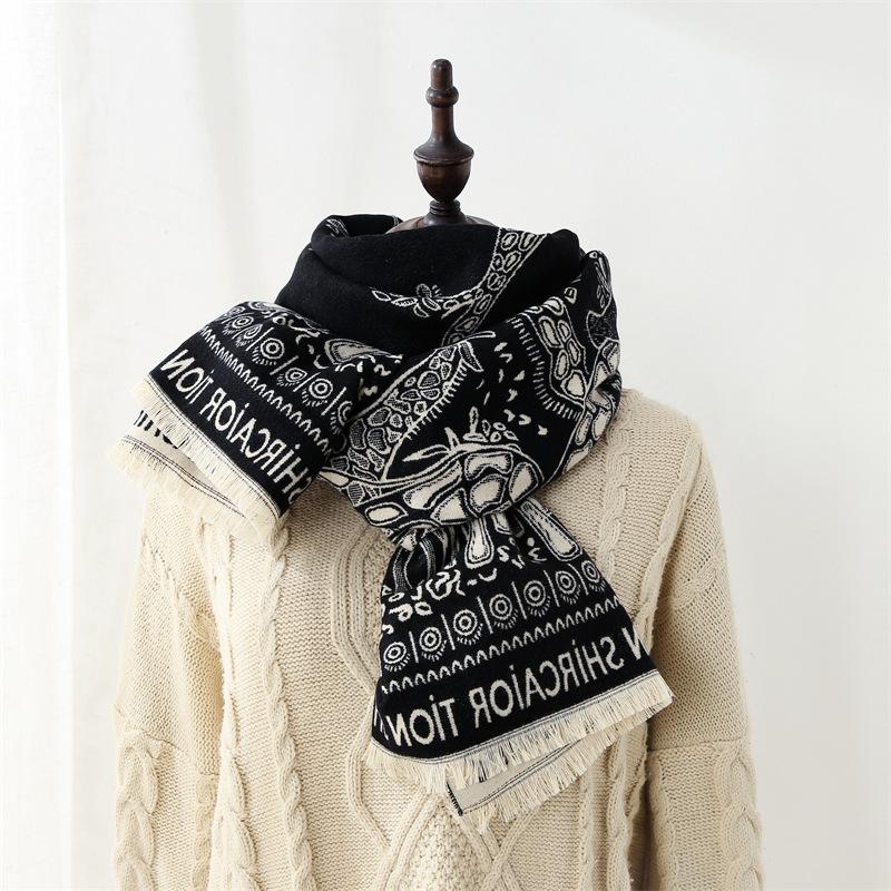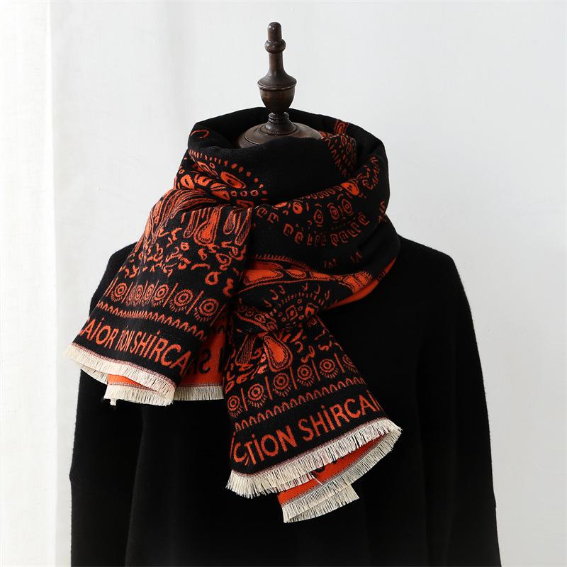 Шарф Женский Зимний 2025 Новый Имитация Кашемира Шарф Теплый Утолщенный Элегантный Шаль Знаменитости