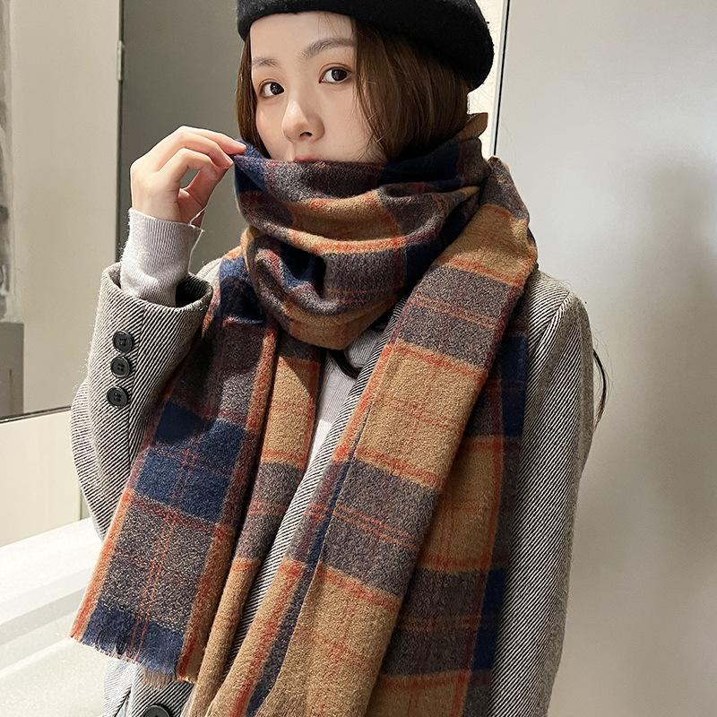Модный клетчатый шарф женский осенне-зимний милый клетчатый шарф из имитации кашемира утолщенный зимний шарф женский