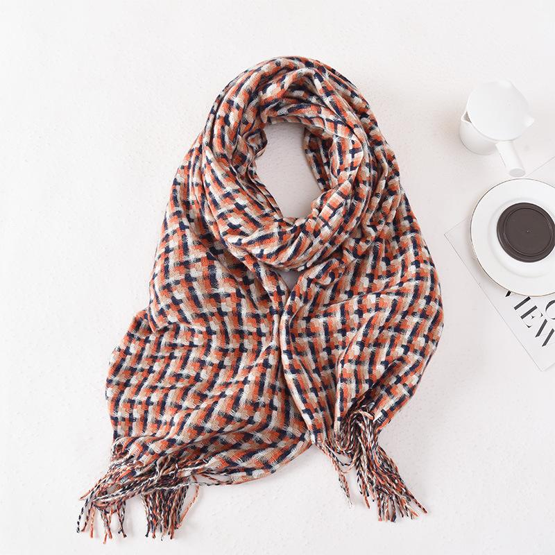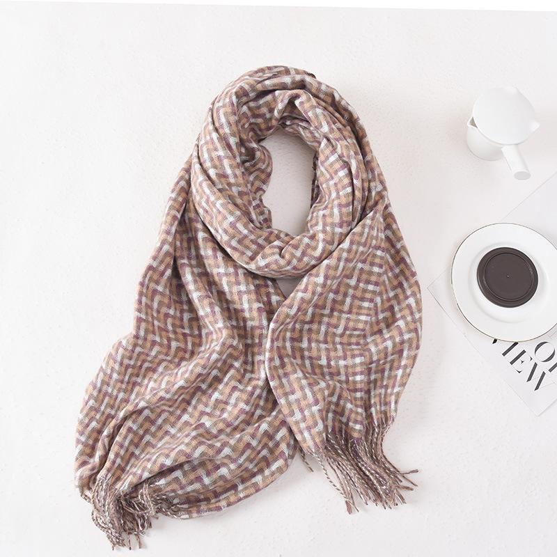 20252025 new plaid scarf women's winter versatile tassel literary soft skin-friendly outer decorative shawl