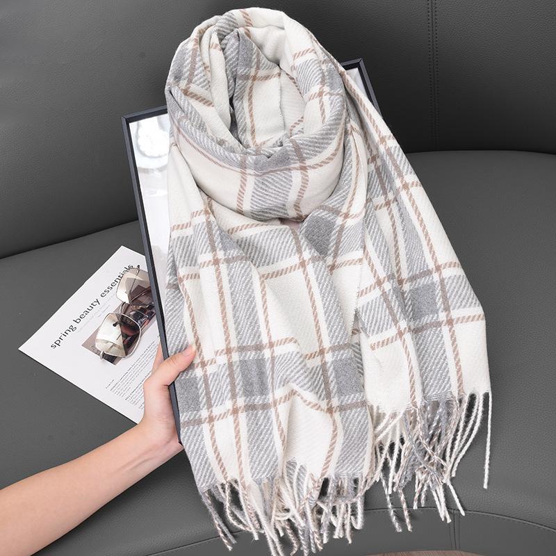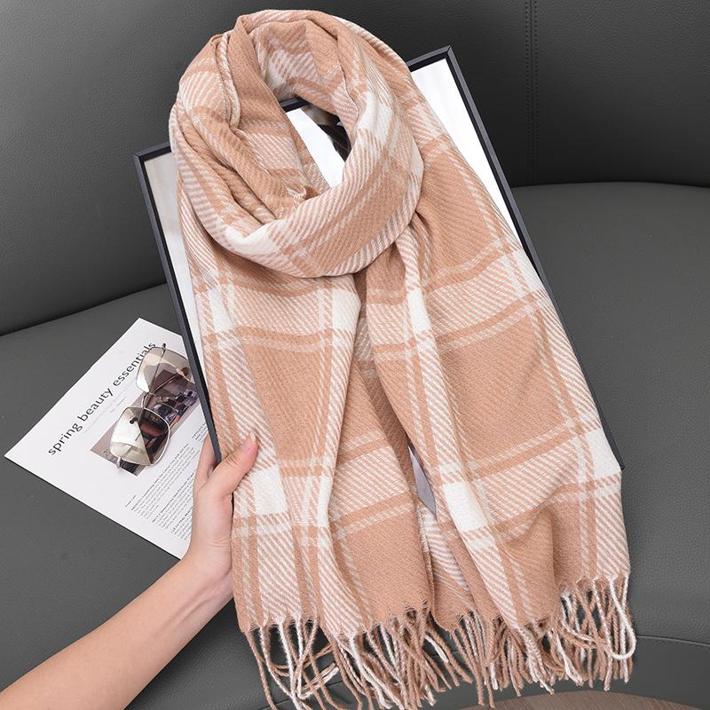 Premium new striped plaid scarf women's soft warm thickened shawl autumn and winter travel cold scarf