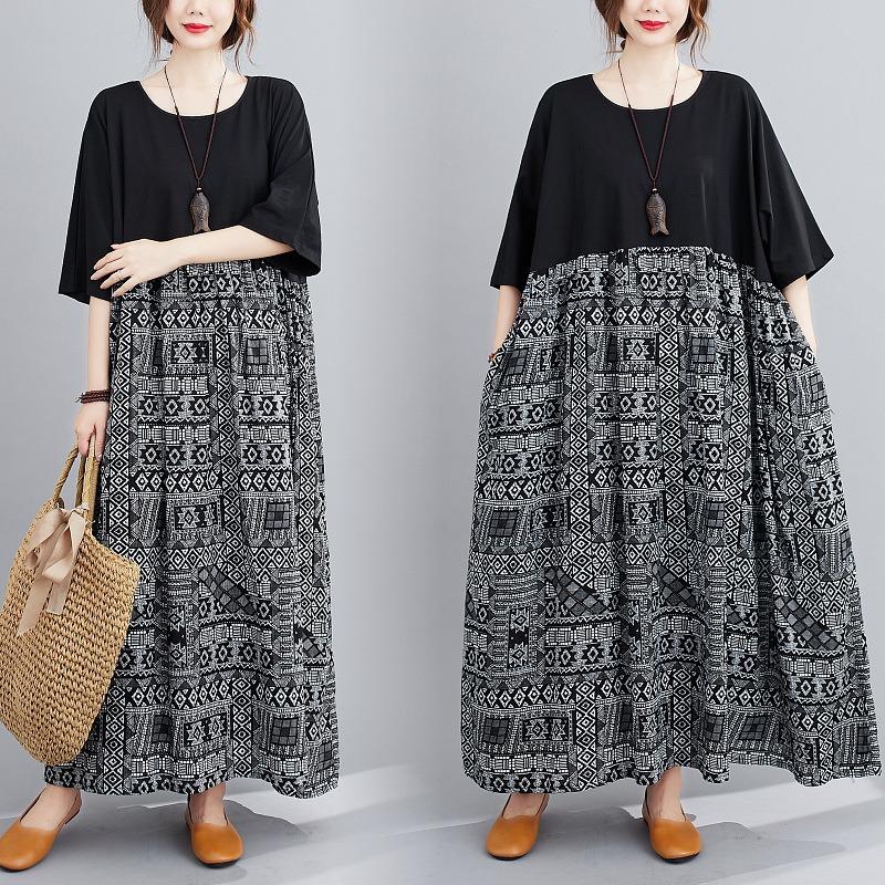 Реальное фото Лето Новое Литературное и Художественное Большого размера Свободное Платье из хлопка и льна с короткими рукавами Женское длинное платье
