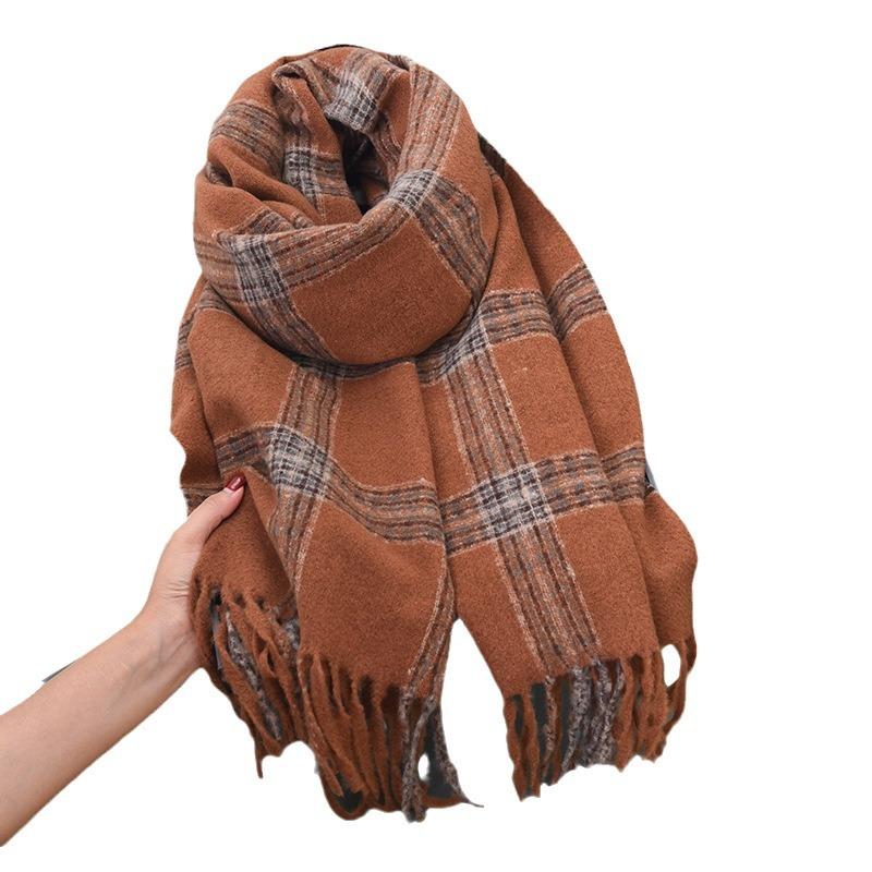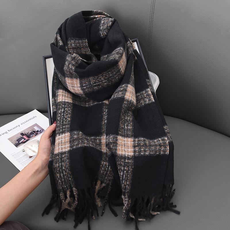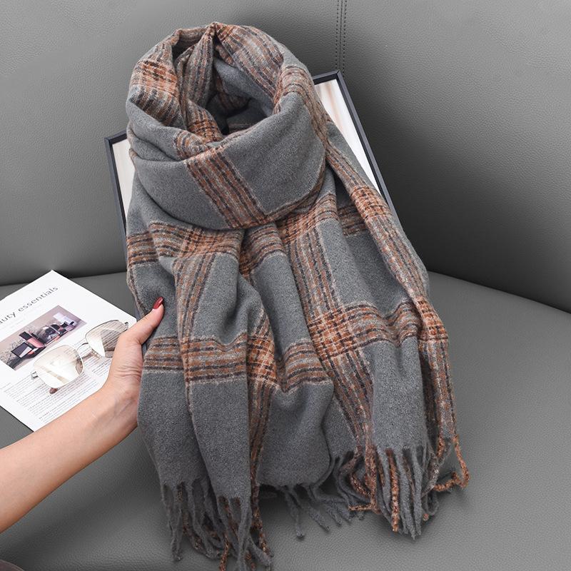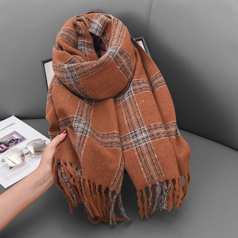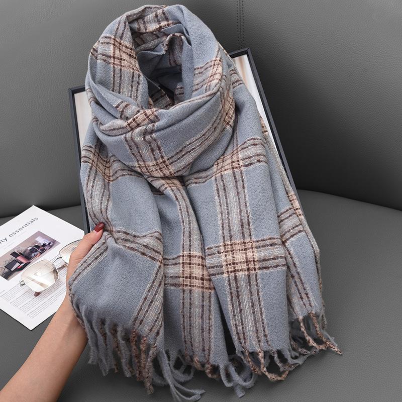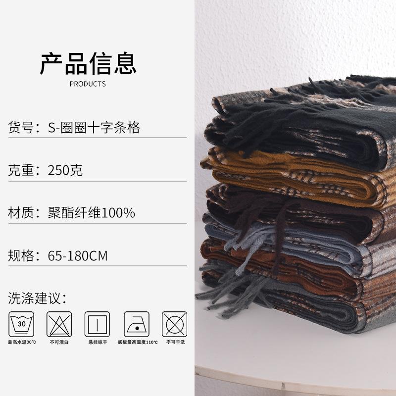 Autumn and winter cross-striped double-sided fringed scarf shawl dual-purpose couple's warm and advanced sense thickened scarf women