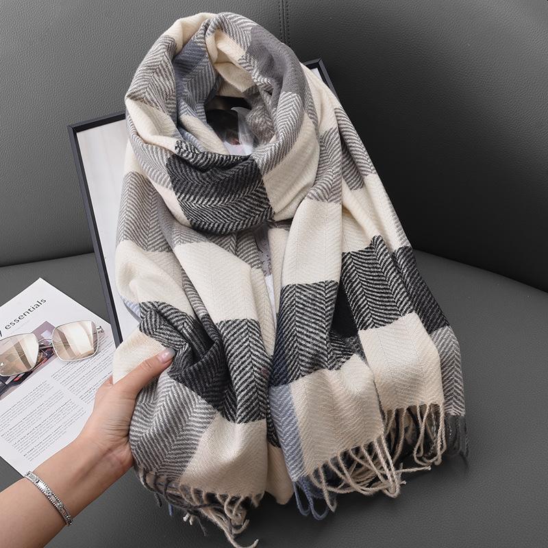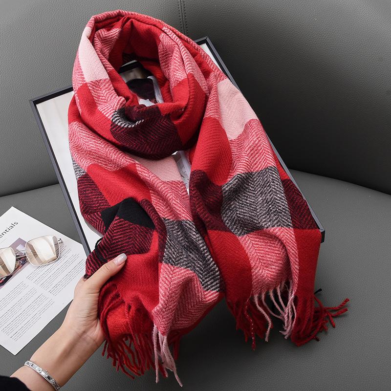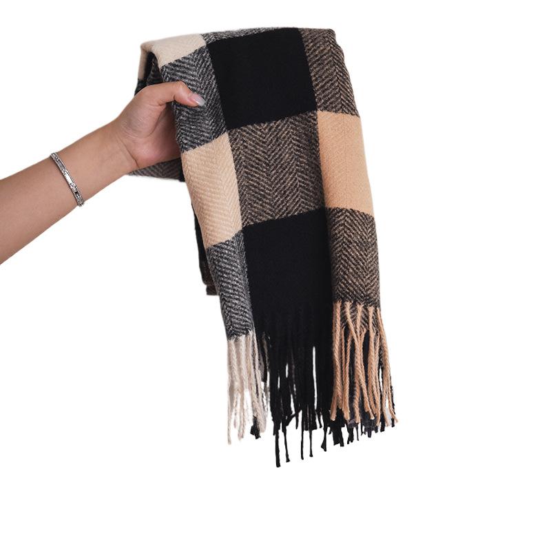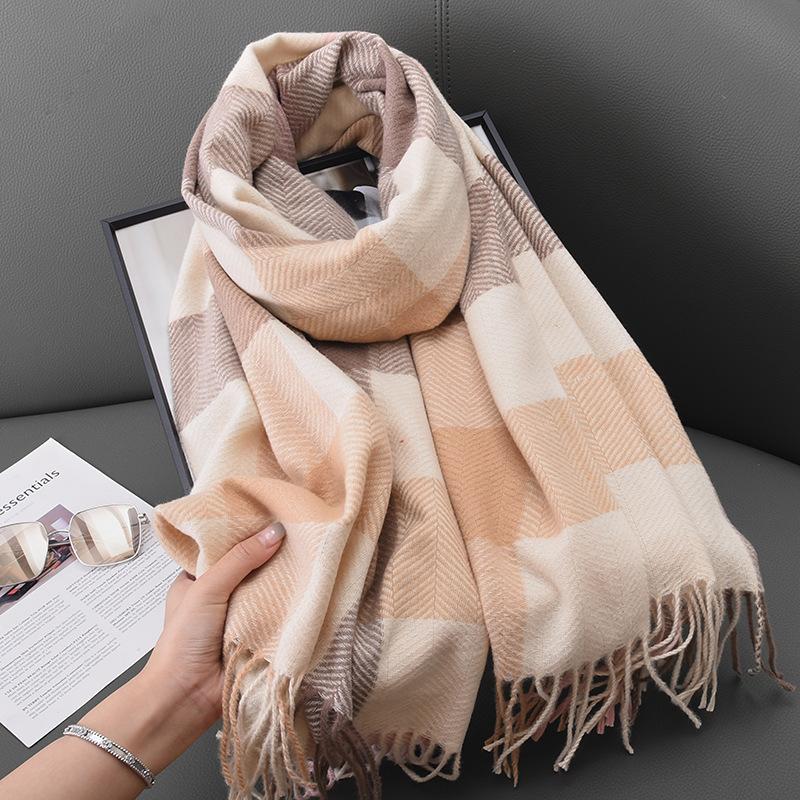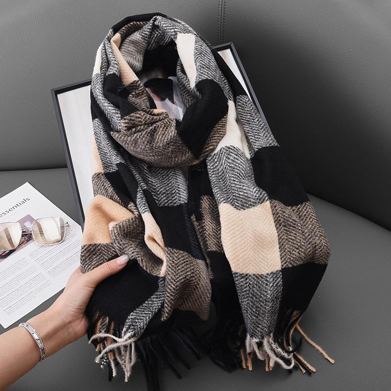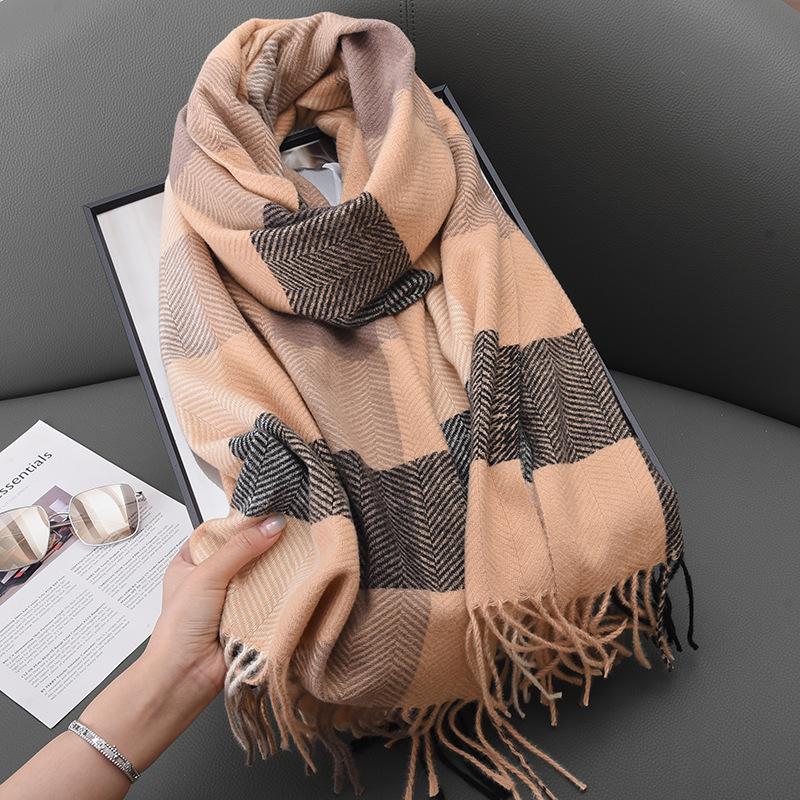 Модный гофрированный клетчатый шарф с имитацией кашемира, женский осенне-зимний шарф с бахромой, высокое качество