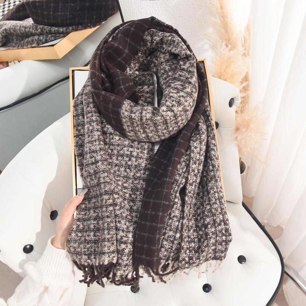 Зимний ретро имитация кашемира цветной шарф атмосфера теплая шаль ленивый стиль студенческий дорожный шарф женщина