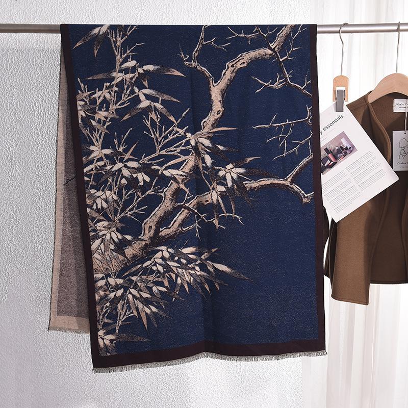 Осень и зима литературный стиль ретро элегантный шарф с принтом ветвей женский модный темперамент с высоким чувством теплая шаль