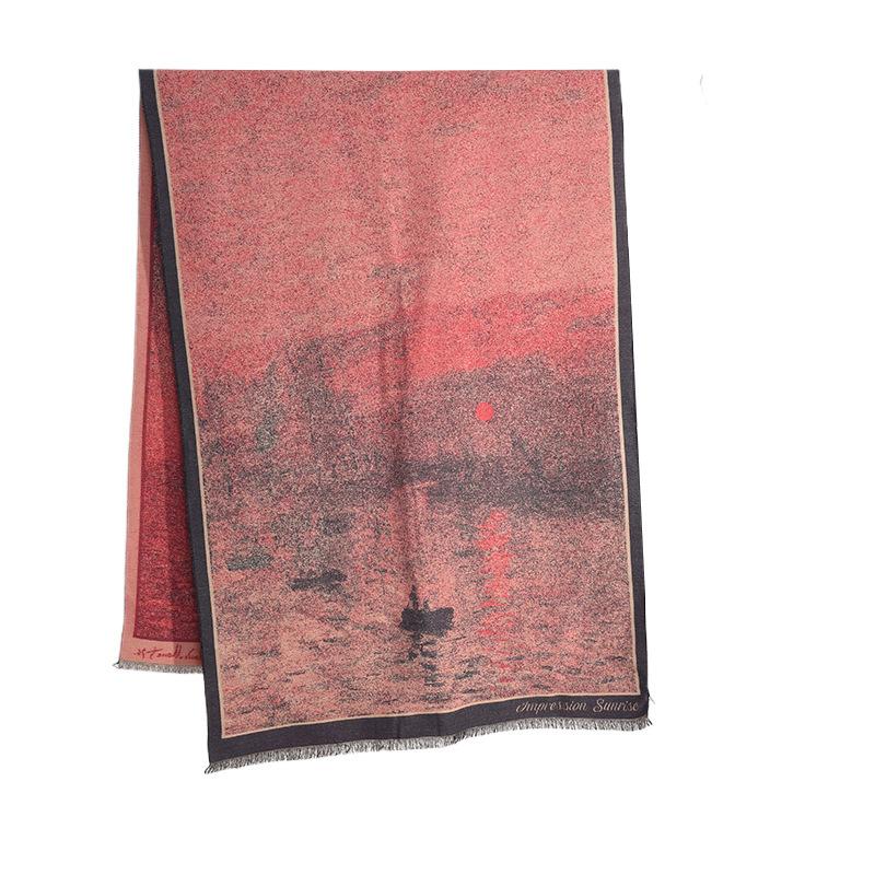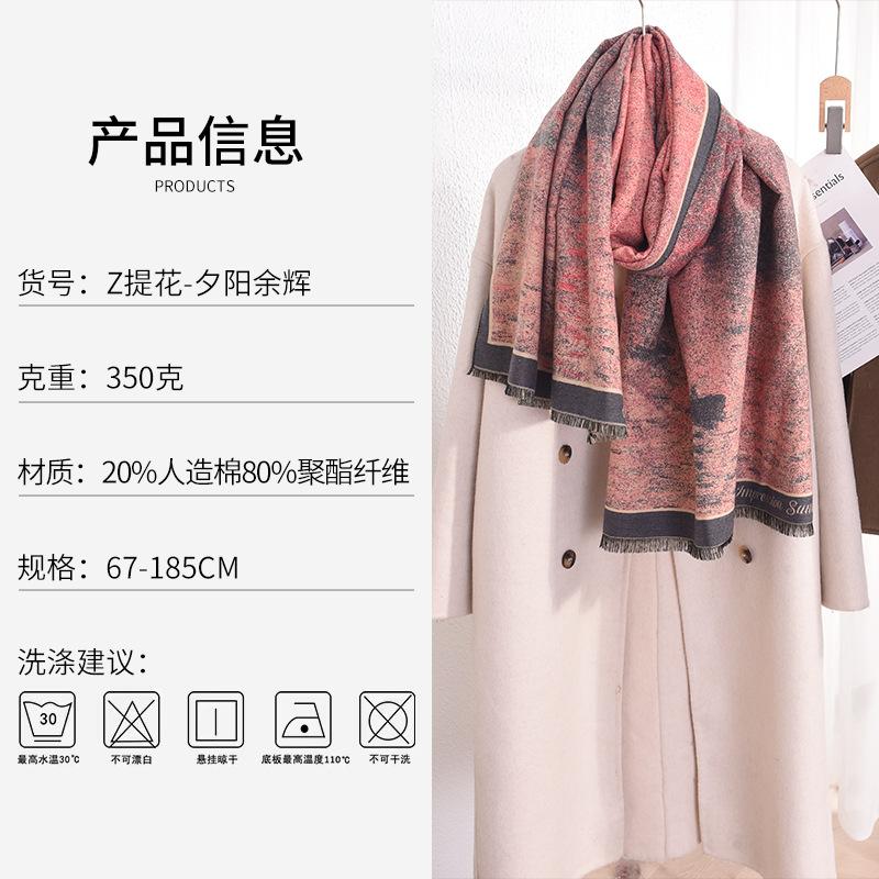 Autumn and winter atmosphere, students wear beautiful outfits, sunset afterglow printing shawl, fashionable and high-end elegant scarf