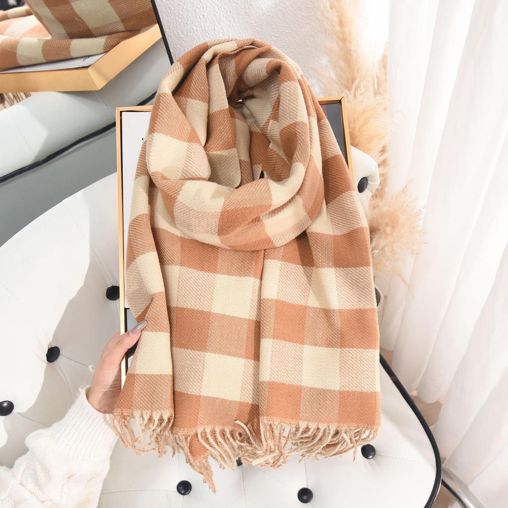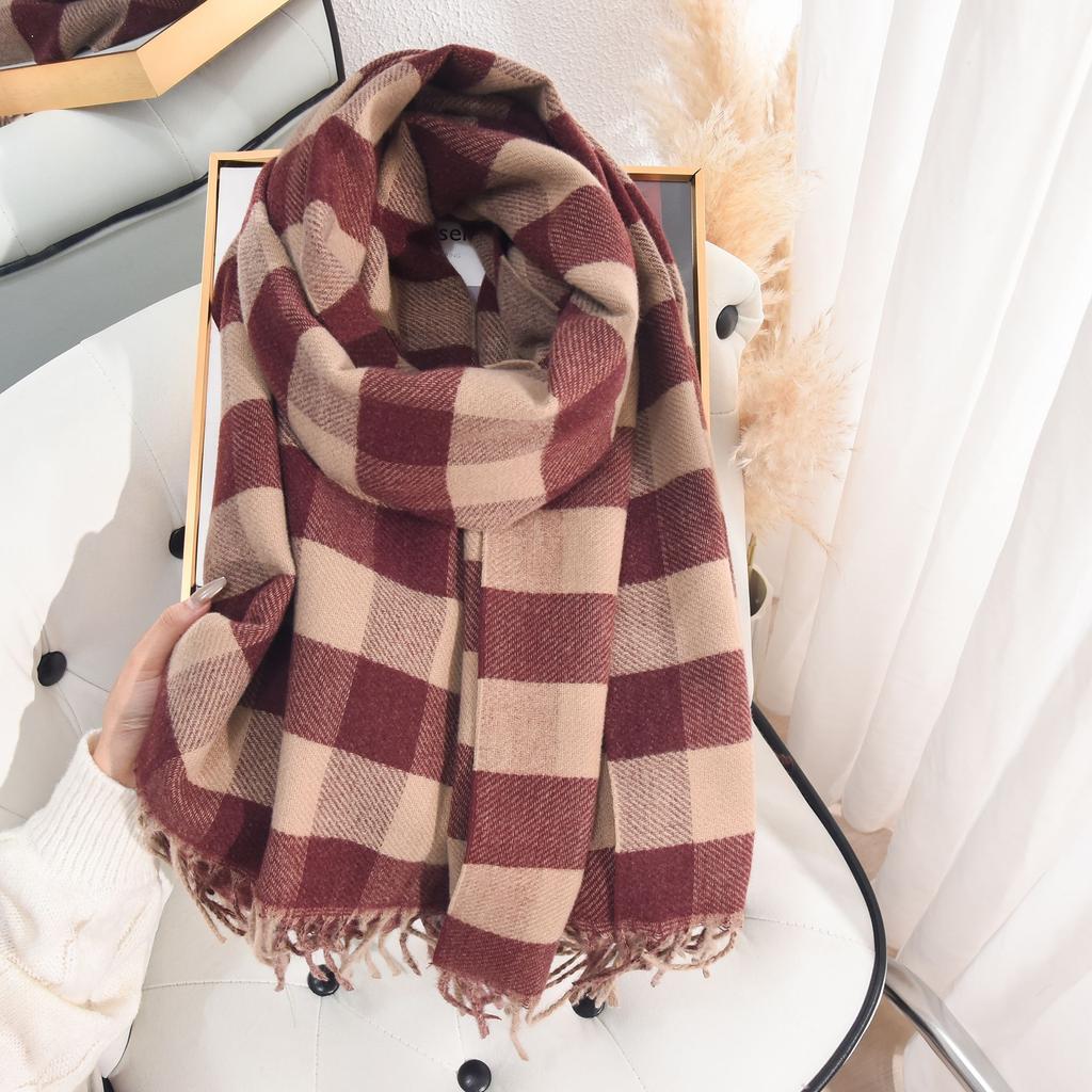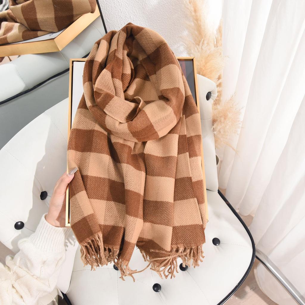 Шарф осенне-зимней атмосферы имитация кашемира двухсторонний клетчатый шарф женская теплая верхняя шаль простой шарф