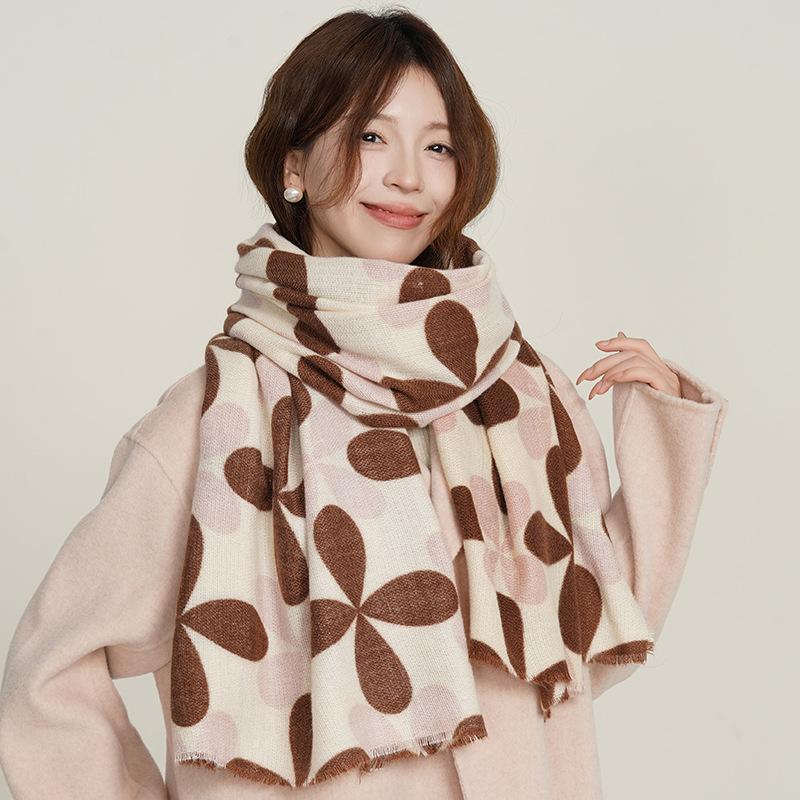 2025 новый имитация кашемира ретро британский бахрома четырехлистный клевер шарф женский осенне-зимний утолщенный модный теплый шарф
