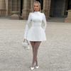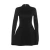 Осень и Зима Новые Женские Платья с Темпераментом Старшего Возраста, Открытой Спиной, Круглым Вырезом, А-силуэта, Однотонные, Приталенные, с Длинным Рукавом