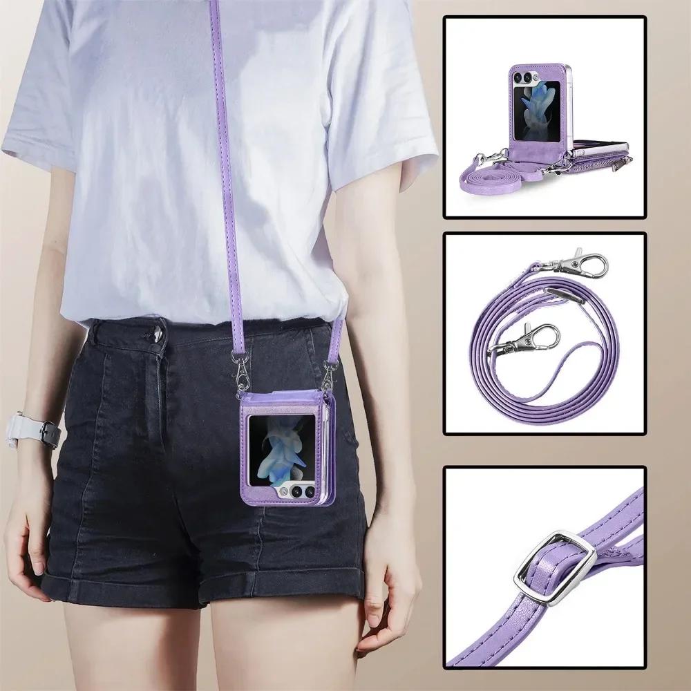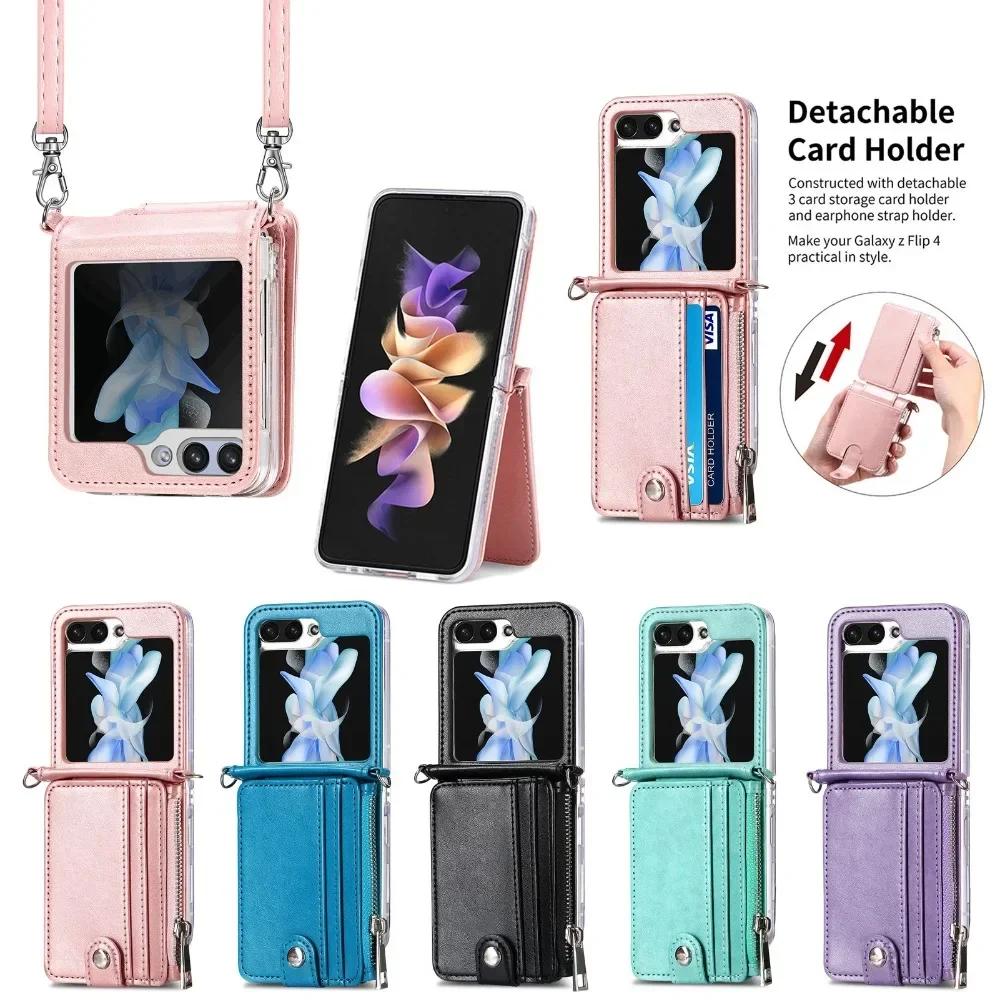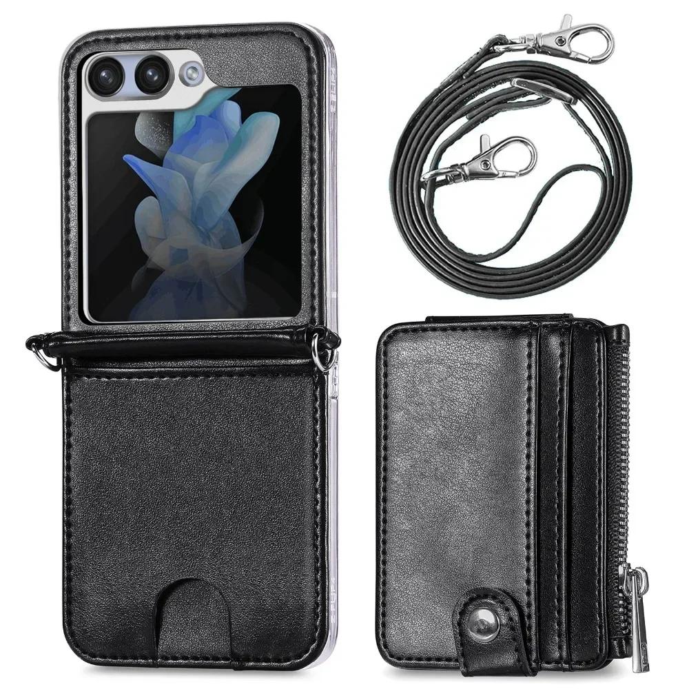 Съемный кошелек на молнии 2 в 1 для Samsung Z Flip 6 5 4 3 Flip6 Flip5 Flip4 Flip3 5G Чехол для телефона со слотом для карт и длинным ремешком