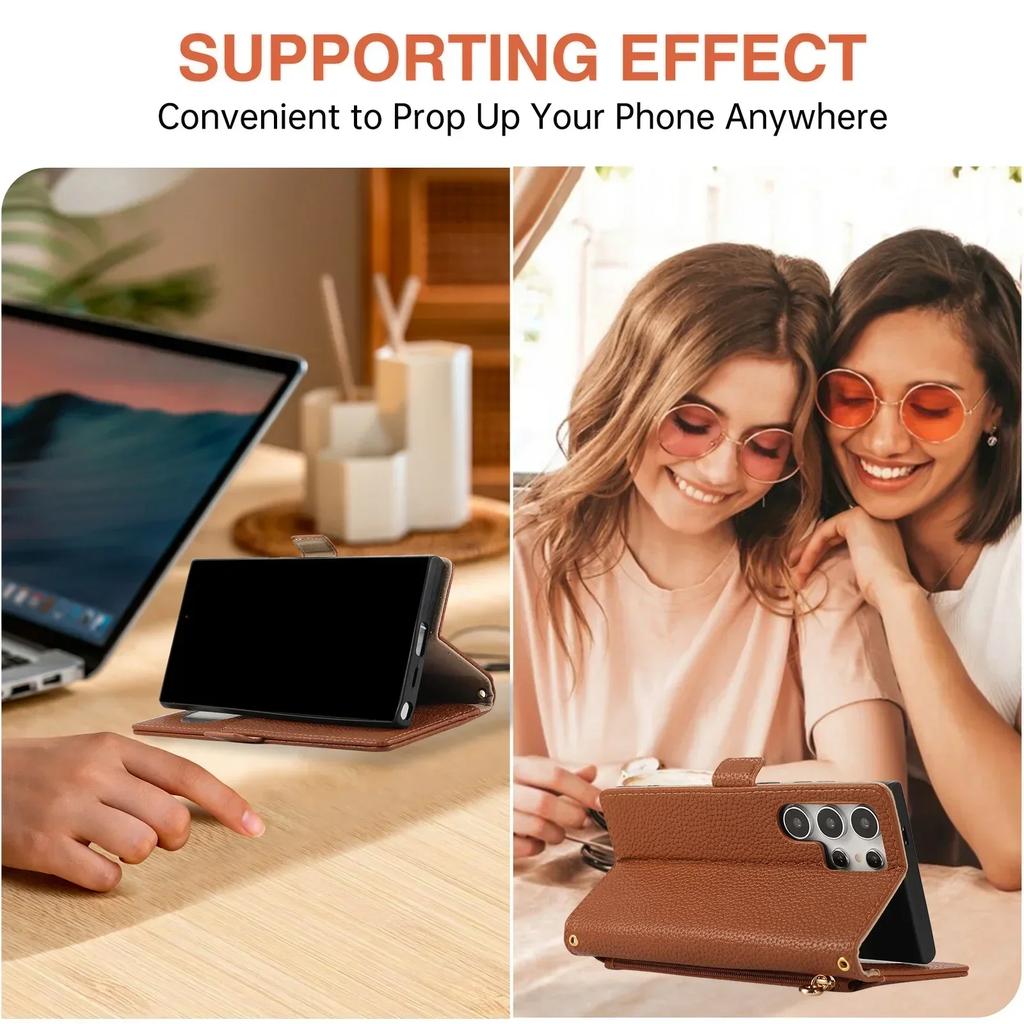 Чехол для телефона с ремешком на запястье для Galaxy S25 Ultra S24 FE S23 S22 S21 S20 Plus A55 A35 A15 A54 Кошелек Слоты для карт Зеркальная крышка