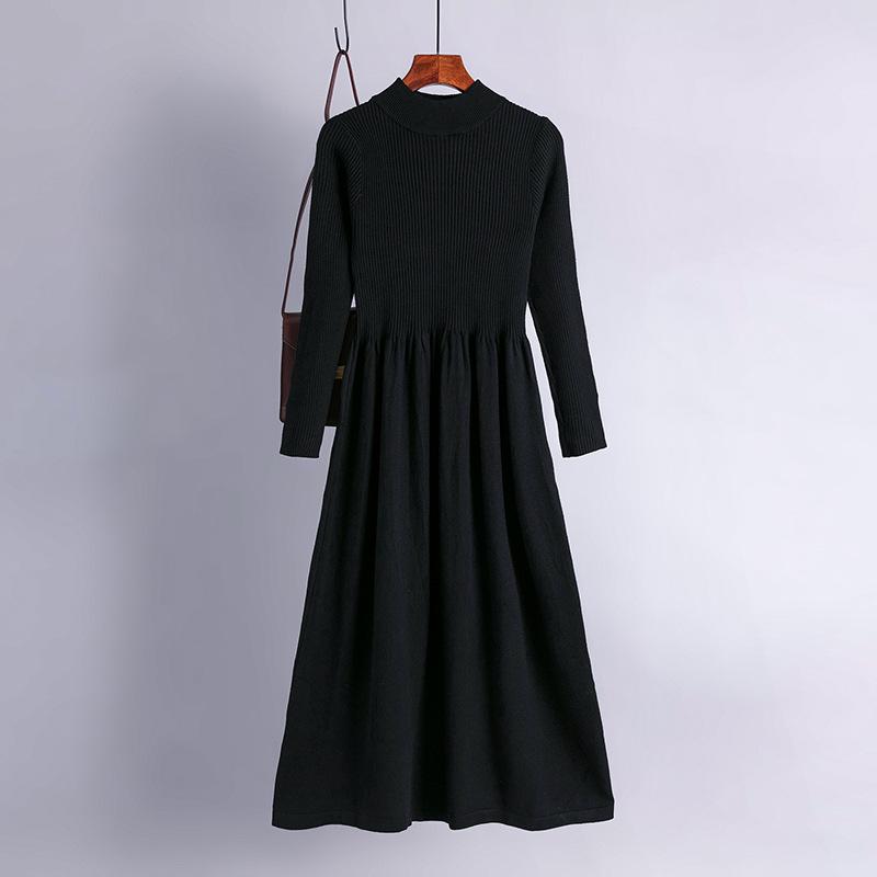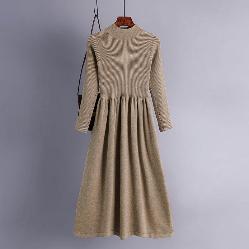 Женское весеннее шикарное однотонное вязаное платье-свитер с длинным рукавом и половиной высокого воротника, женский темперамент, черный, синий, хаки, абрикос, фуксия