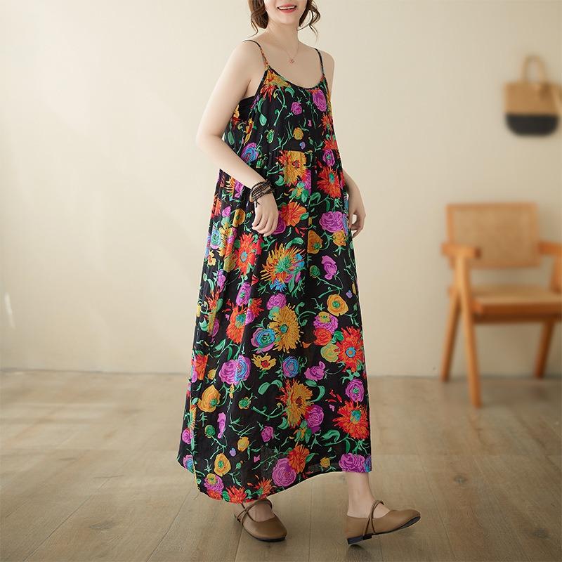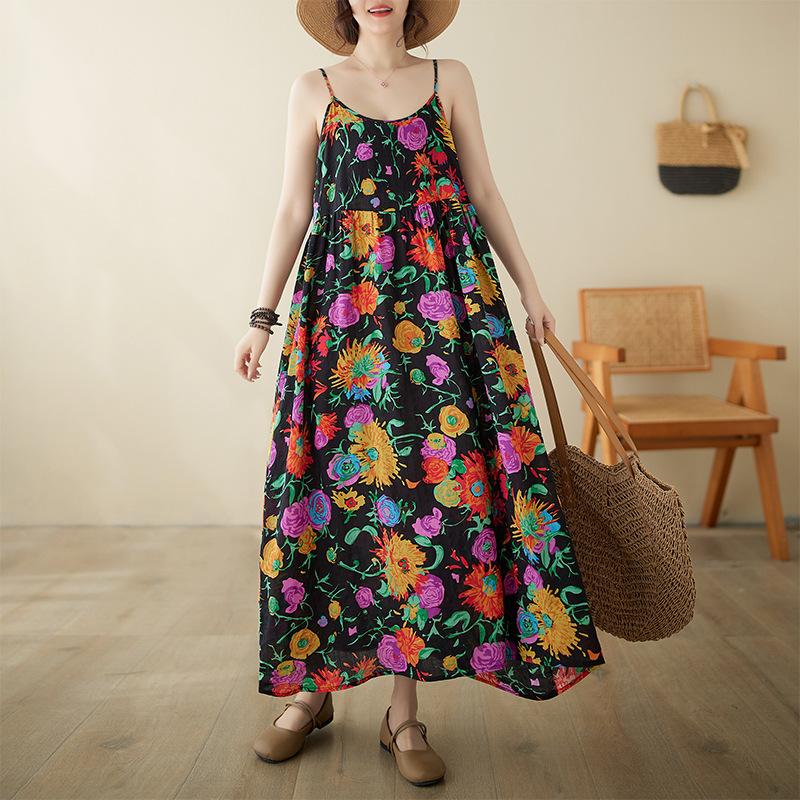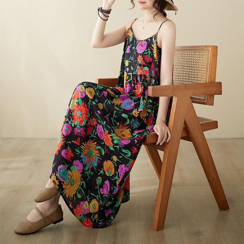 Летнее новое литературное и ретро пуловер топик на бретелях свободного большого размера А-силуэта без рукавов женское платье