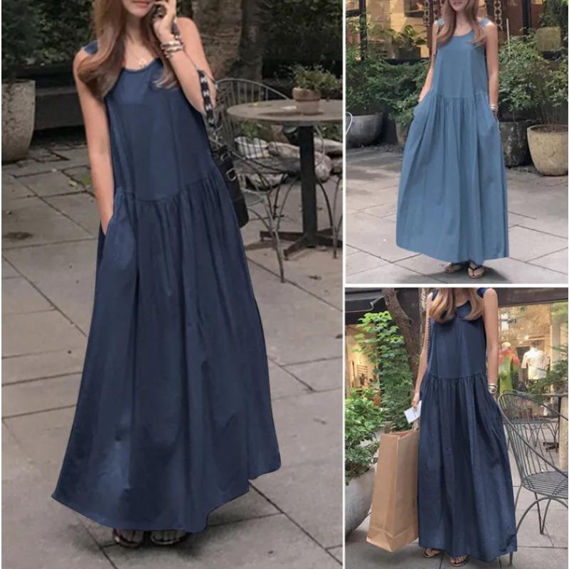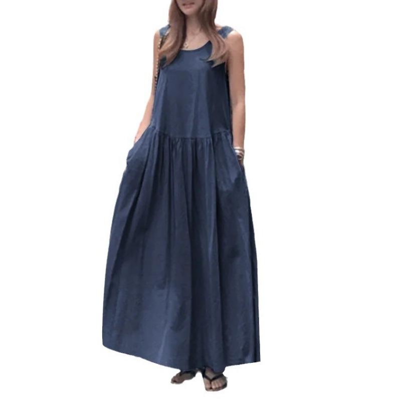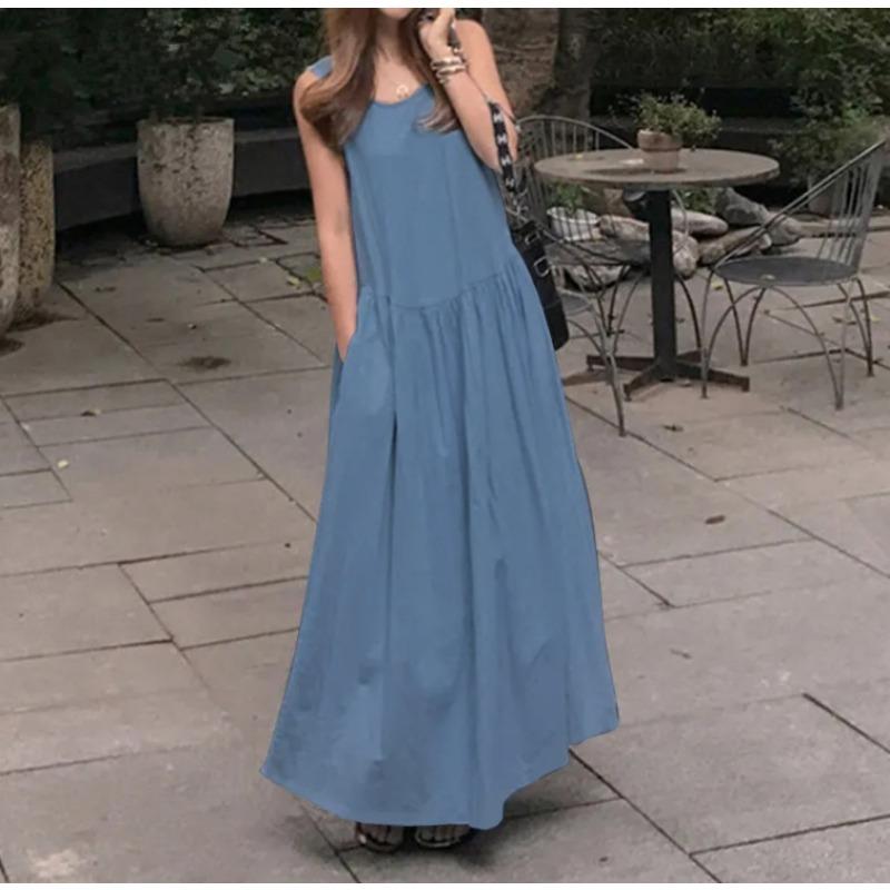 Почувствуйте непринужденный летний стиль с этим макси-платьем в стиле бохо-шик! Это платье свободного кроя с жатой текстурой, созданное для удобства и универсальности, имеет круглый вырез и струящийся силуэт. Оно идеально подходит для повседневных прогулок, пляжных дней или приключений на выходных.. Изготовлен из легкой, дышащей ткани, сохраняет прохладу и привносит нотку художественного изящества в ваш гардероб..