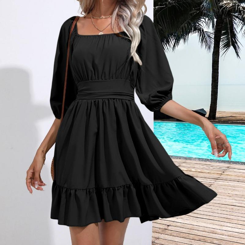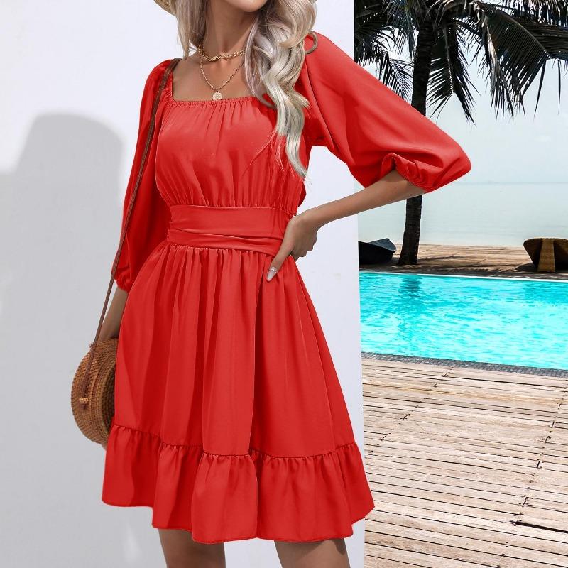 Летние женские платья с квадратным воротником в богемном стиле с рюшами и эластичной резинкой на талии выше колена, мини-платье с половиной рукавов, пуловер Mujer Vestidos